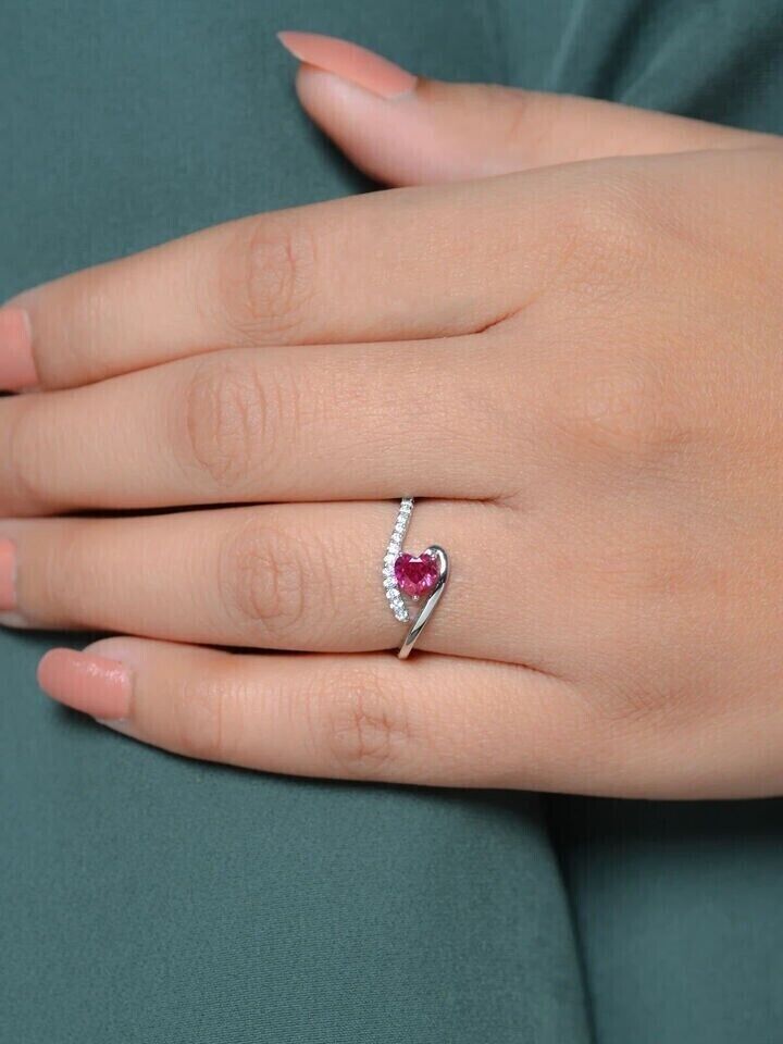 1.50Ct Heart Cut Lab-Created Ruby Women Promise Ring 14k White Gold Plated