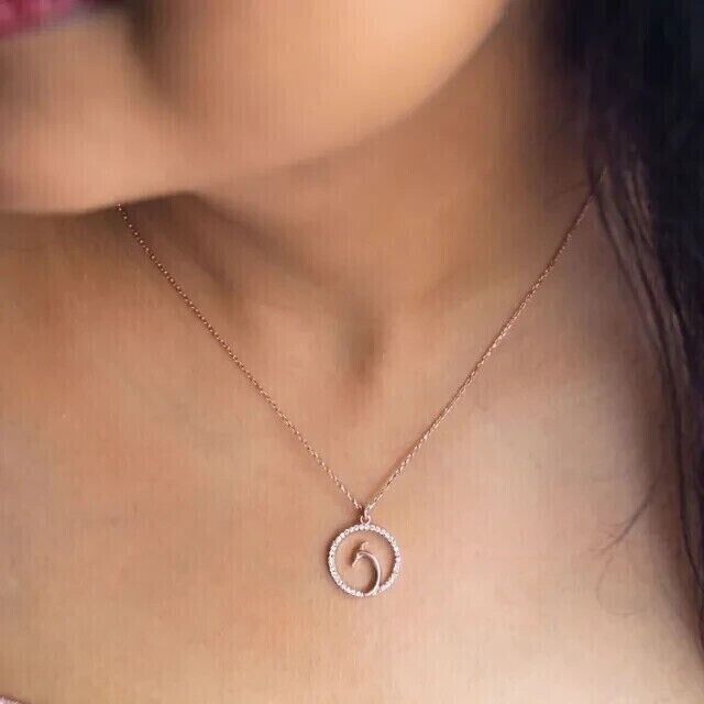 1Ct Round Lab-Created Diamond Women Fancy Pendent 14K Rose Gold Plated Chain