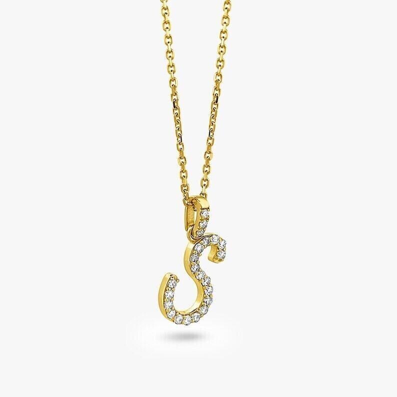 1.00 Ct Round Cut Lab-Created Diamond "S" Letter Pendant 14k Yellow Gold Plated