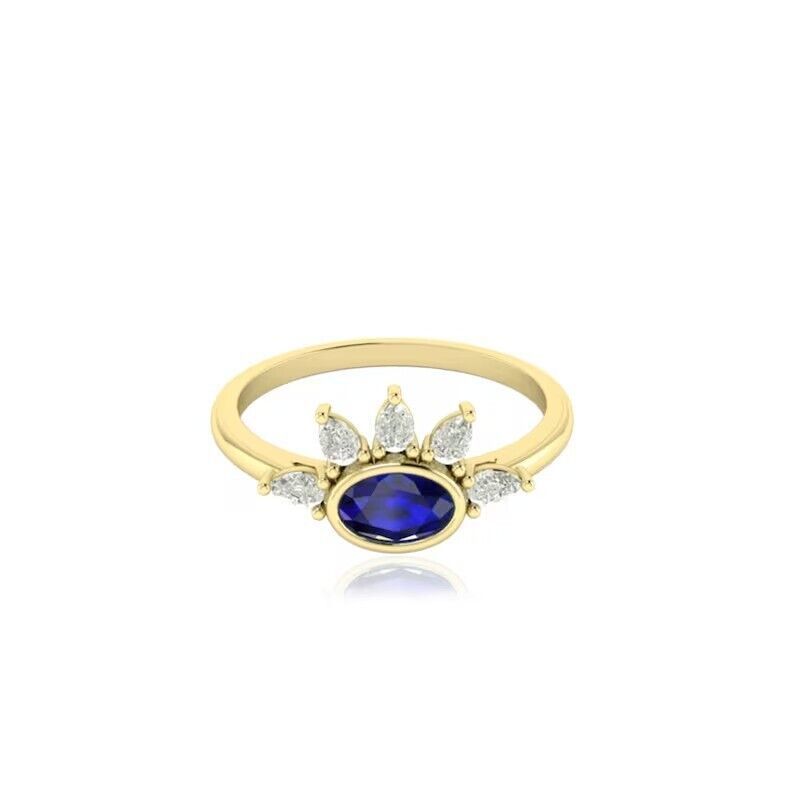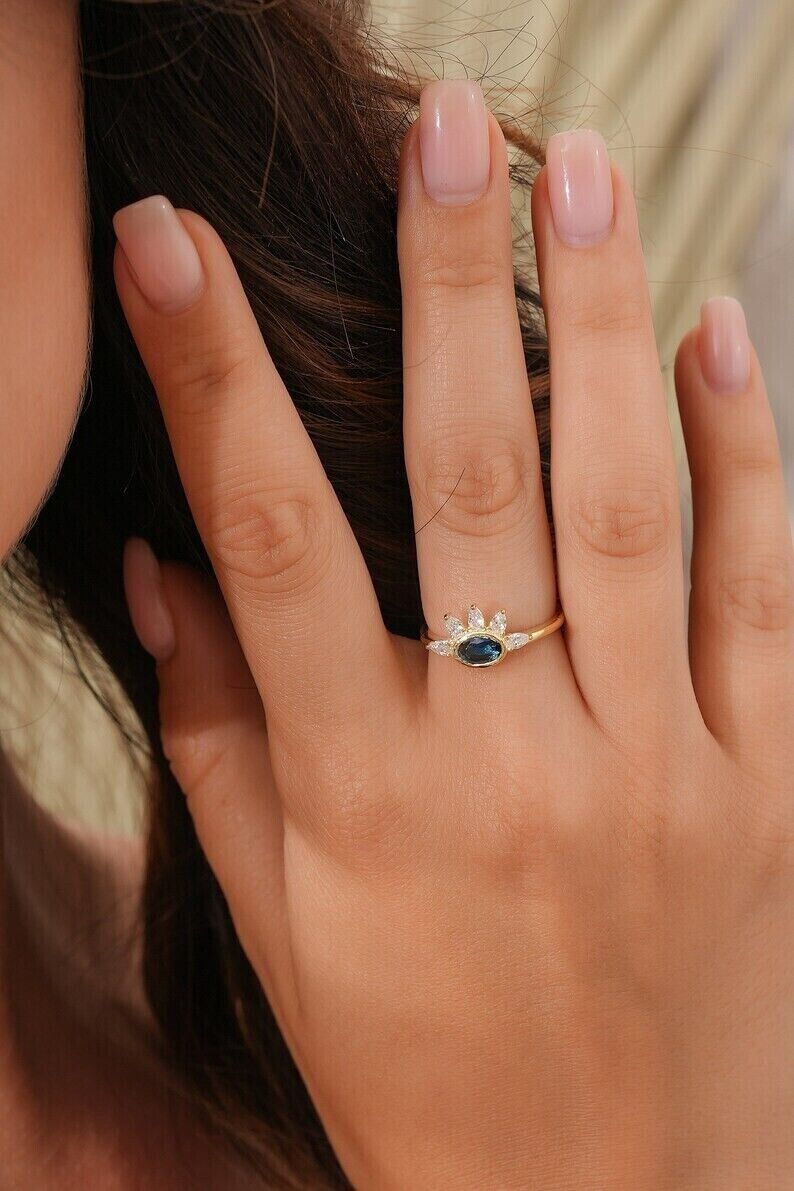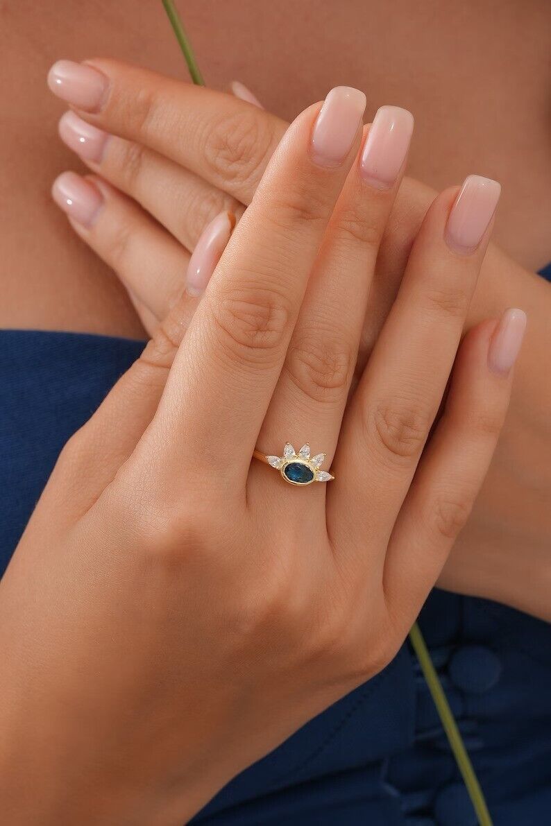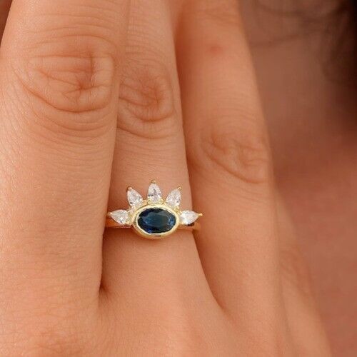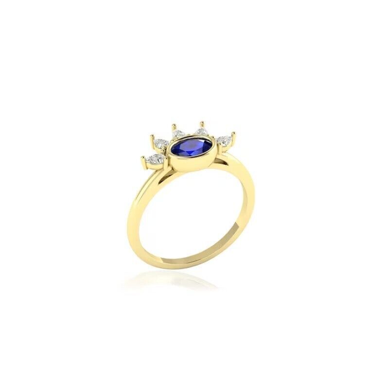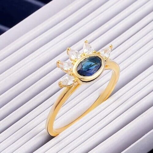 2Ct Lab Created Oval Blue Sapphire Engagement Women Ring 14K Yellow Gold Plated