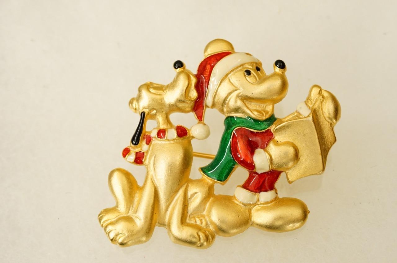 Disney World Costume Jewelry Mickey Mouse Pluto Christmas Carol Brooch Pin