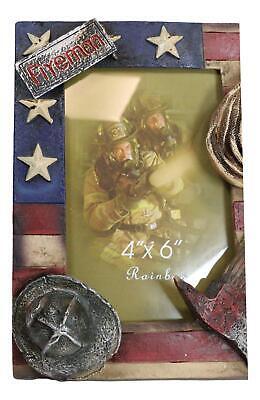 Patriotic Fire Department Fireman Helmet Hose Axe USA Flag 4"X6" Picture Frame