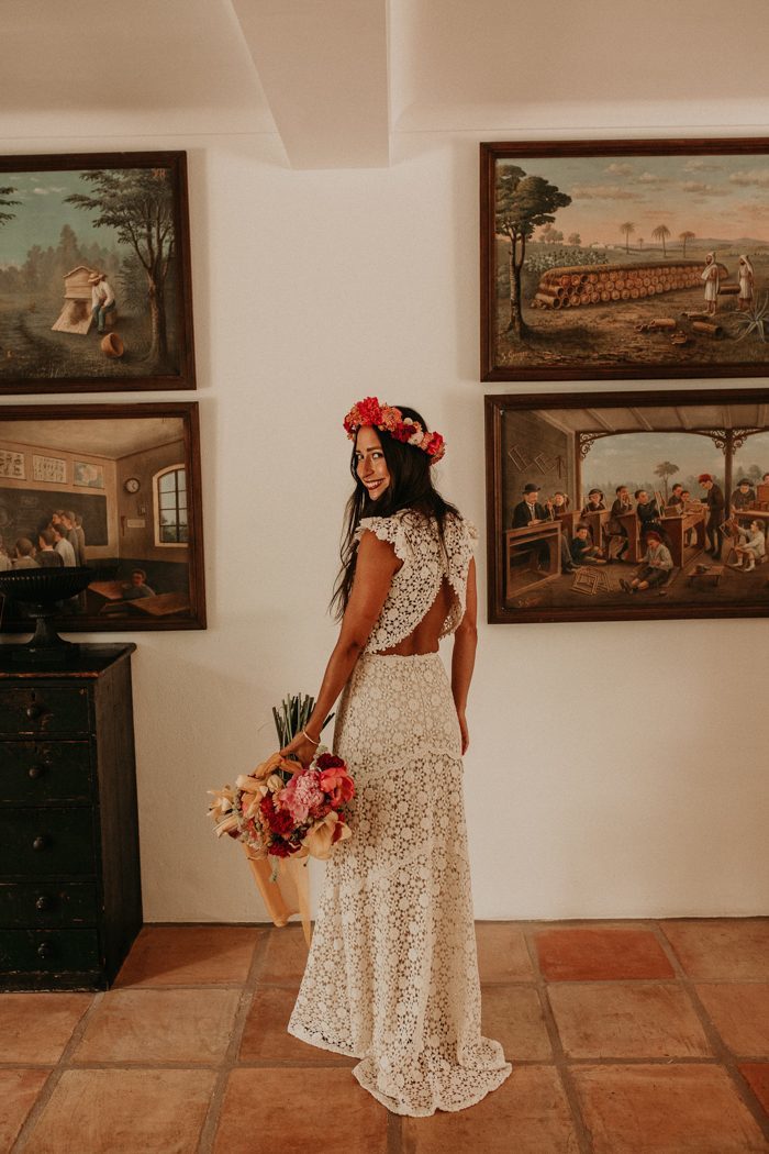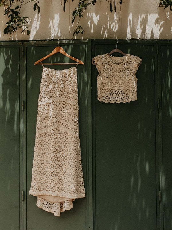 Casual Mermaid Long Two Piece Lace Wedding Dress,Crop Top Bridal Separates