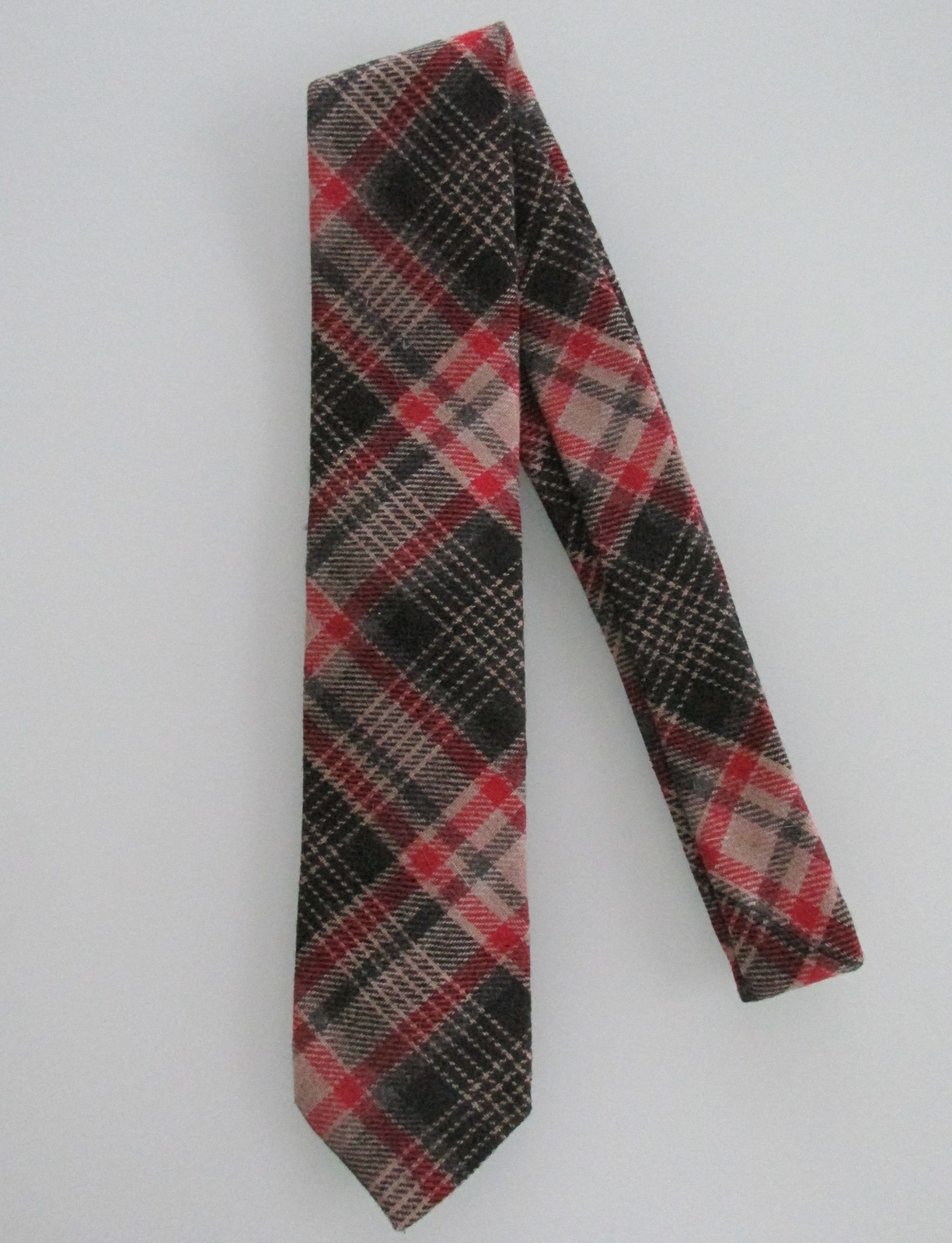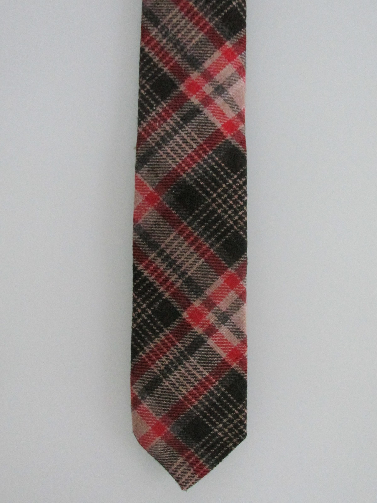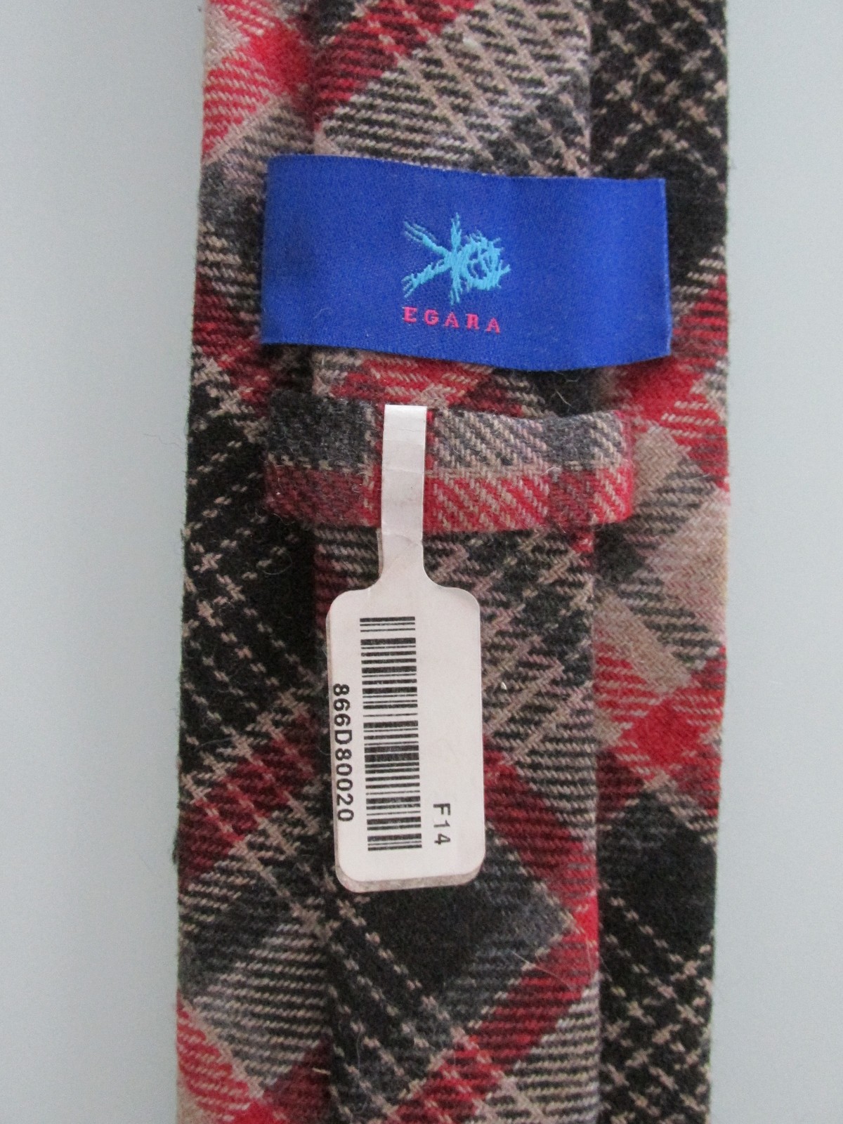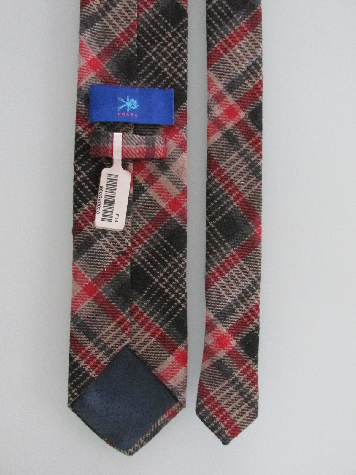 Description: Up for sale is an Egara men's slim wool blend plaid tie. It is made of 50% wool/50%acrylic fabric. Dimensions are approximately 57" long x 3.00" wide. It has a multicolored tartan plaid pattern in gray, red tan. This tie has a $49.50 price ticket attached.
