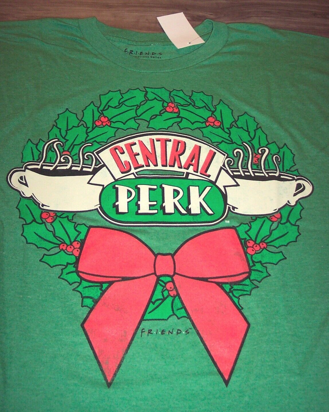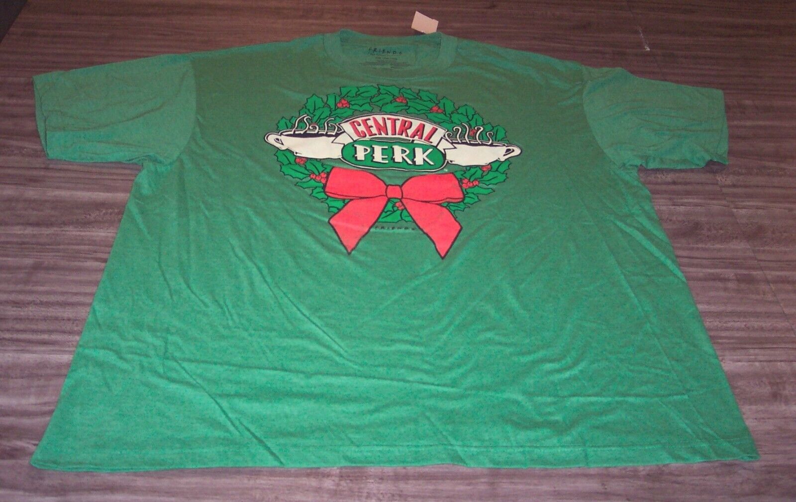 This is a FRIENDS TV Show Central Perk Coffee Shop CHRISTMAS WREATH Holiday T-shirt. It is a size Big and Tall 3XB and it is NEW w/ TAG. It is 27 inches from armpit to armpit and 33 inches in length. Combine auctions to save on shipping. AGD3
