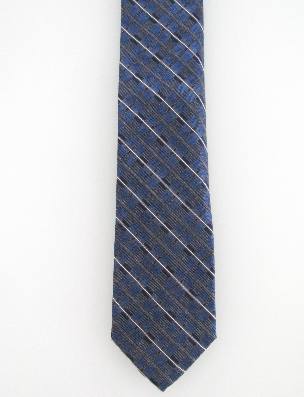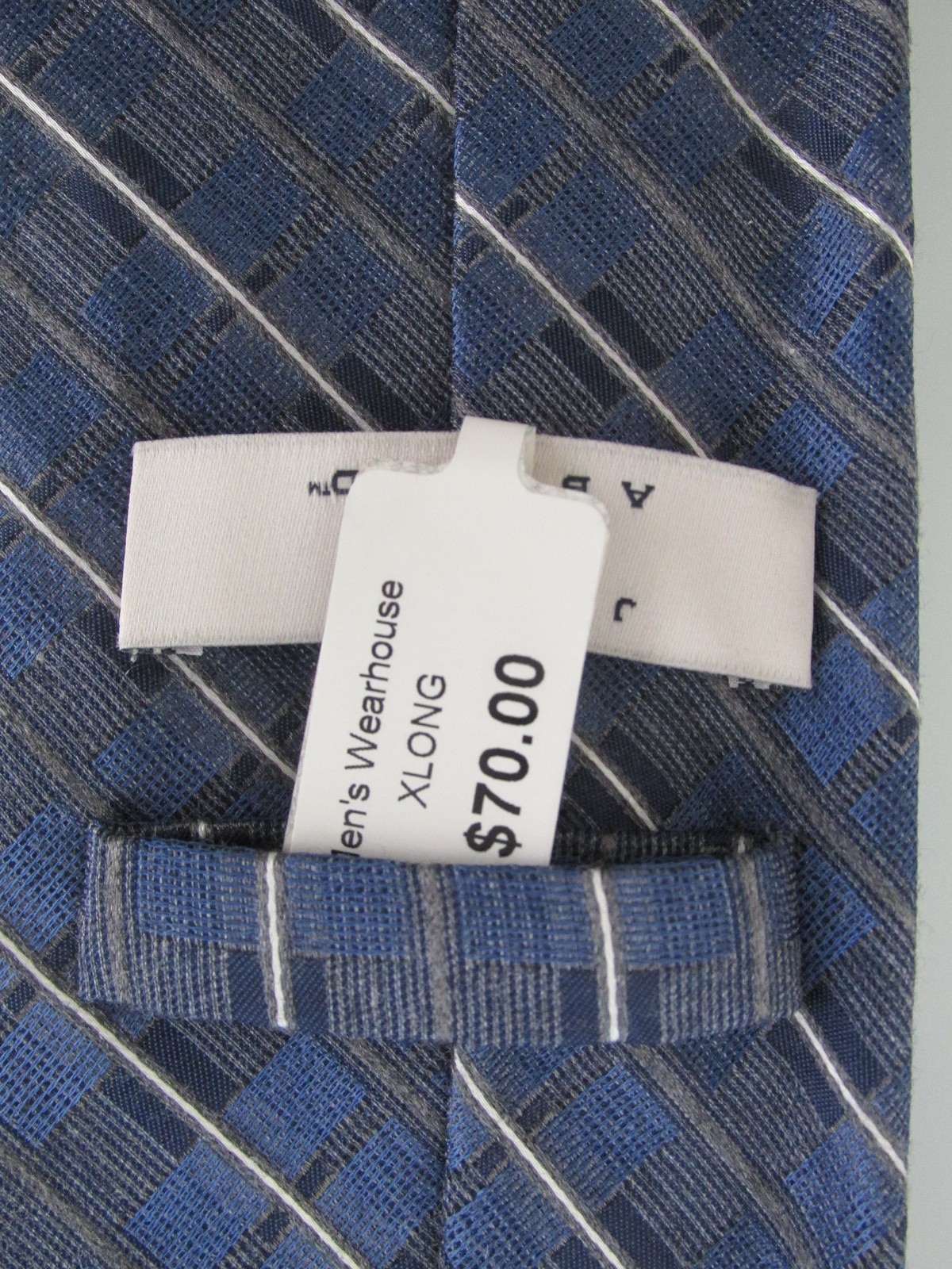 Description: Up for sale is a Joseph Abboud (NWT) men's x-long silk tie. The tie is made of 100% silk. The tie has a multicolored contemporary design in two-tone blue, gray white. Dimensions are approximately 62" long x 3.25" wide. The tie has a $70.00 price ticket attached.