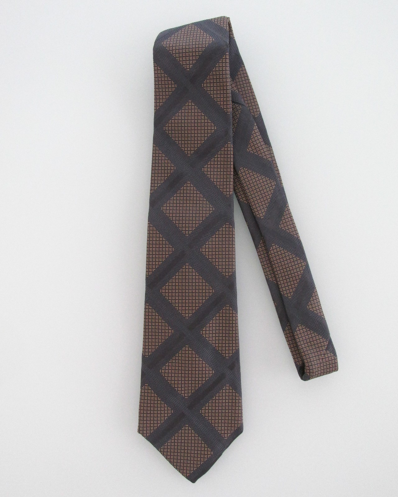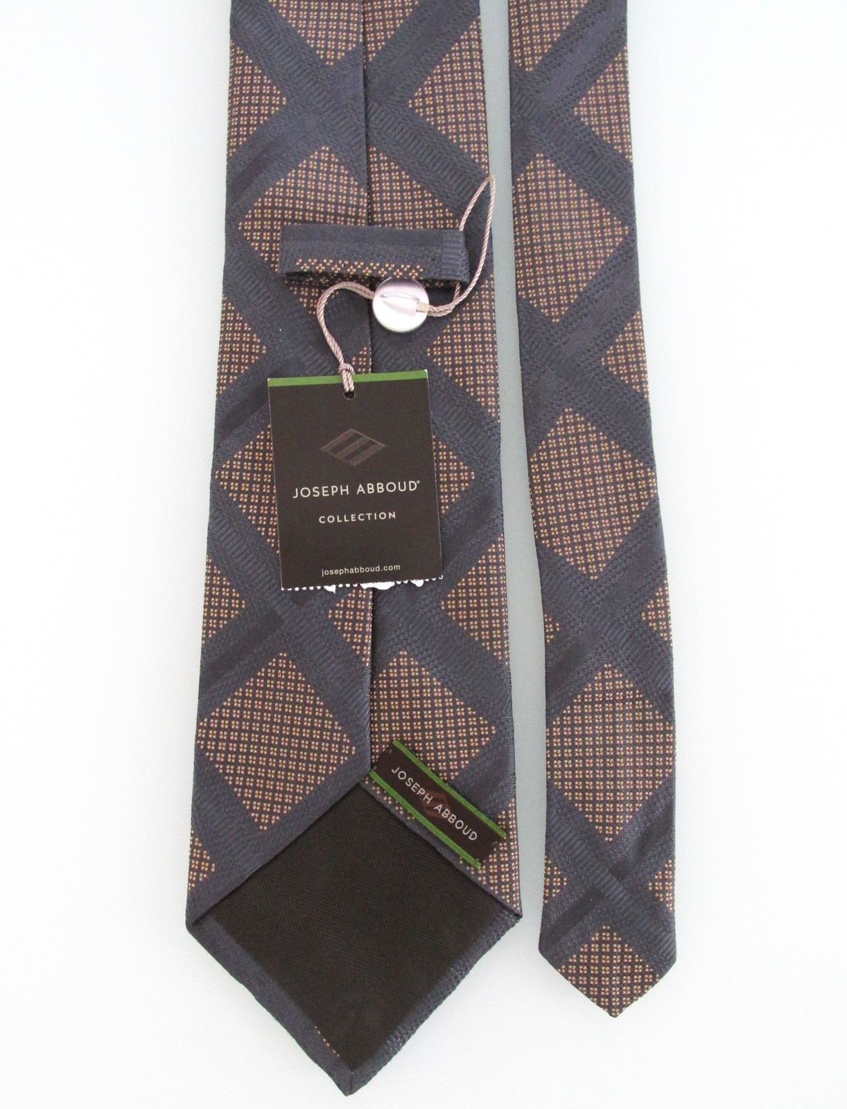 Description: Up for sale is a Joseph Abboud (NWT) men's silk tie. This tie is made in the USA of 100% silk. The tie has a gray gold geometric pattern. Dimensions are approximately 58" long x 3 5/8" wide. This collection of ties usually has an $89.50 attached price ticket.