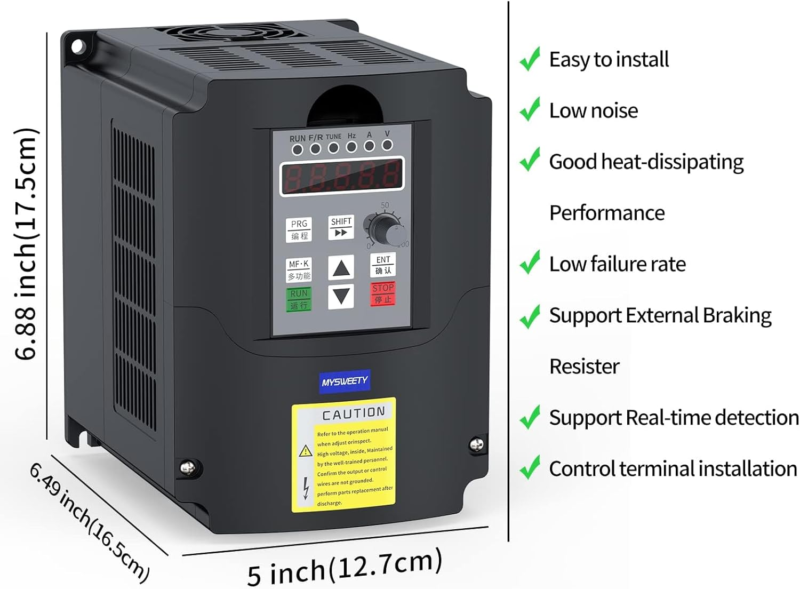 5.5KW Inverter for CNC Motor Speed Control and Spindle 7.5PH 25A 1 or 3 Phase Input 3 Phase 0-3200HZ Output, Single Phase to 3 Phase Converter, Variable Frequency Drive