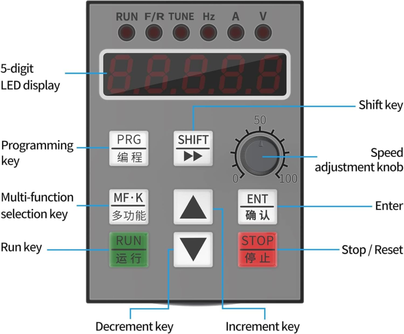 ??Feature?The VFD has two sets of terminal functions, Rich of digital and analogy control terminals for versitile control, optional MODBUS (RS485) extension and PID Setting (diversified parameter setting). Enabling adaptation to various application scenarios and needs, thereby enhancing flexibility and scalability.