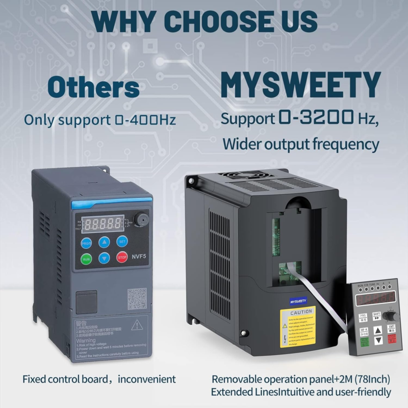 ??Various Protection?Compared to light-duty VFD, heavy-duty VFD provide superior precision, reliability, and longer service life. Additionally, our product comes with a range of protective features including overheat, overload, fuse, overvoltage, voltage, restart, stall, and short circuit protection, as well as support for real-time monitoring.