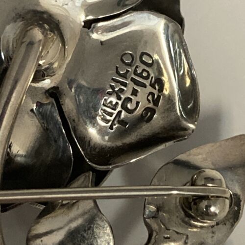 Taxco sterling silver brooch pin rose beautifully crafted and tagged by maker TC-160. Made in Mexico.