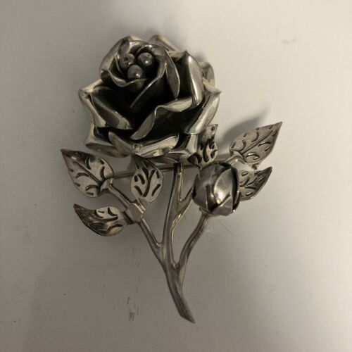 Rose Brooch Pin 925 Mexico TC-160 Sterling Silver Taxco Signed Heavy 20g