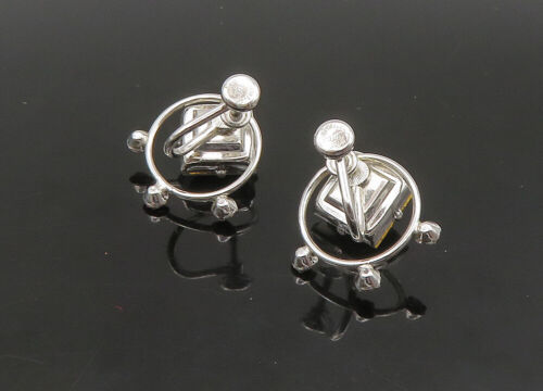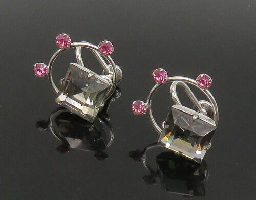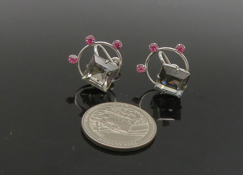 VAN DELL 925 Silver - Vintage White & Pink Topaz Non Pierce Earrings - EG11234