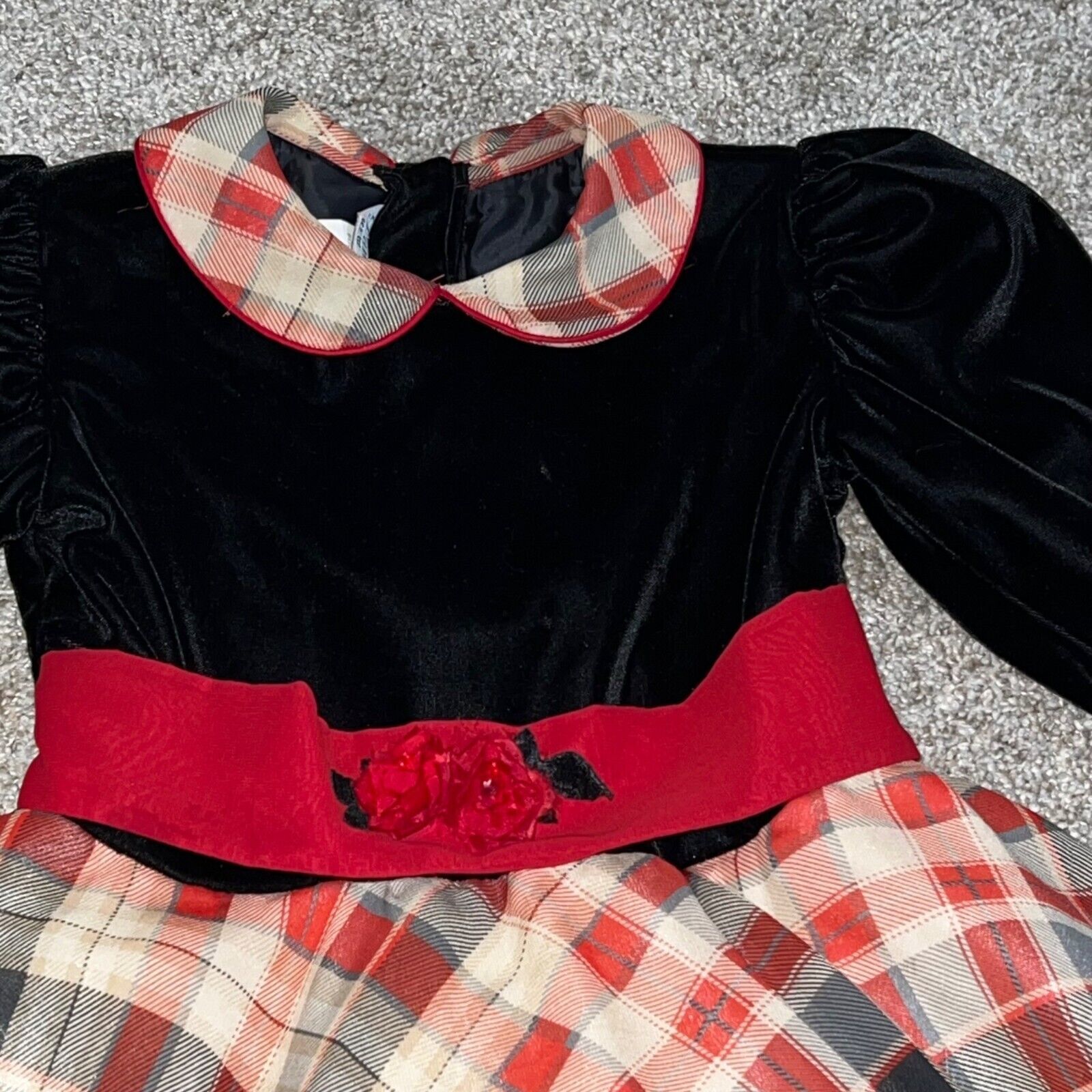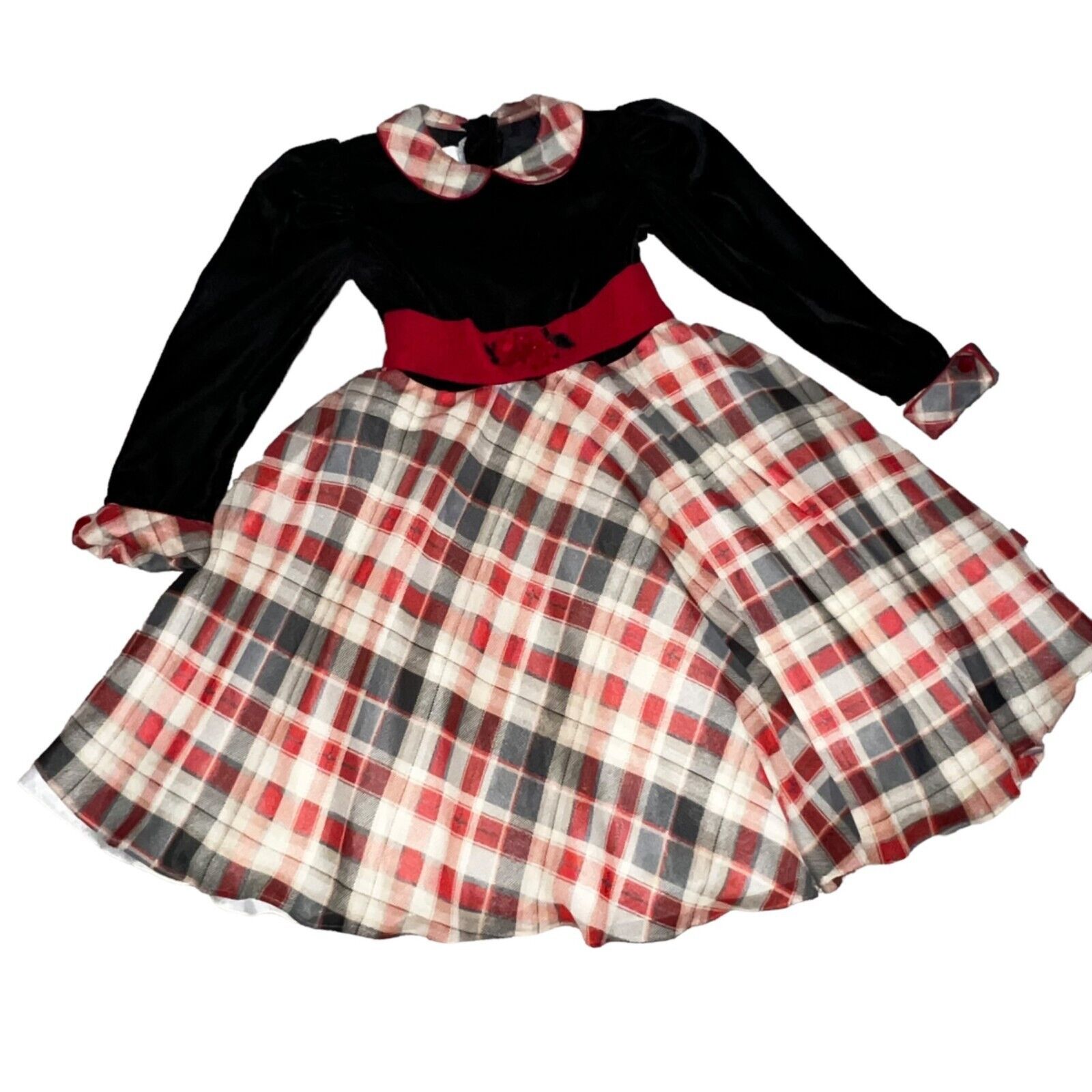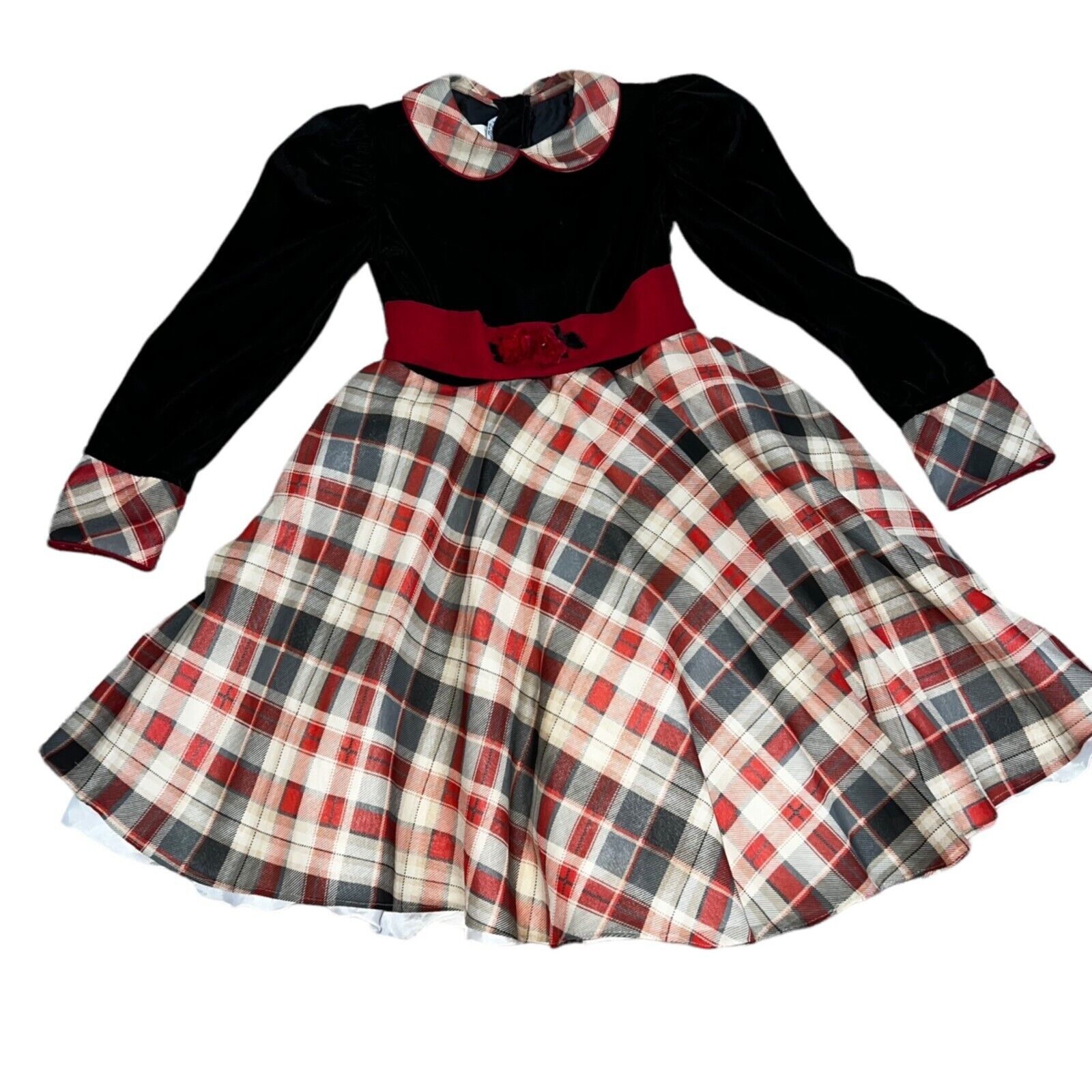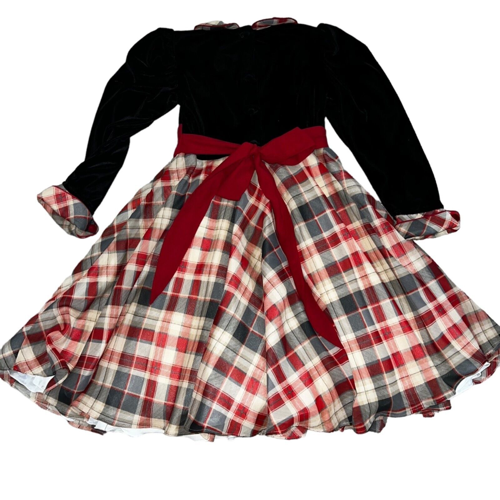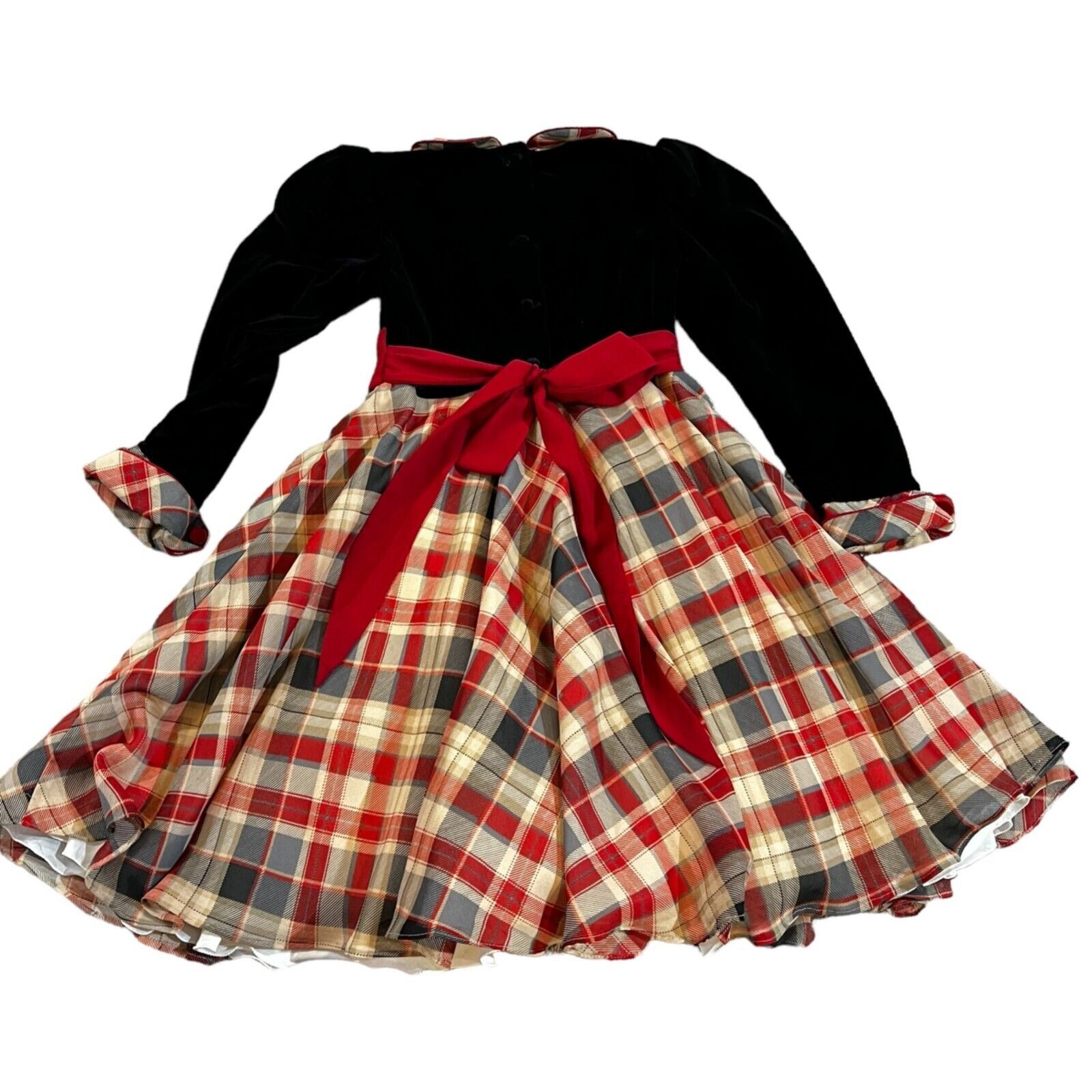Pamela New York Boutique Vintage Black Velvet Christmas Plaid Girls Dress 8