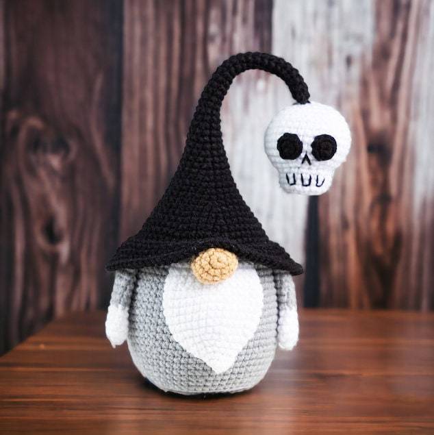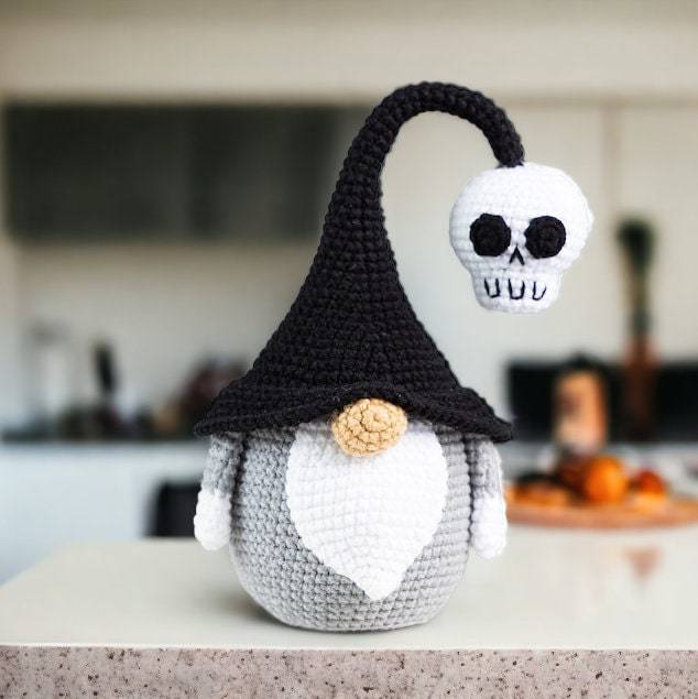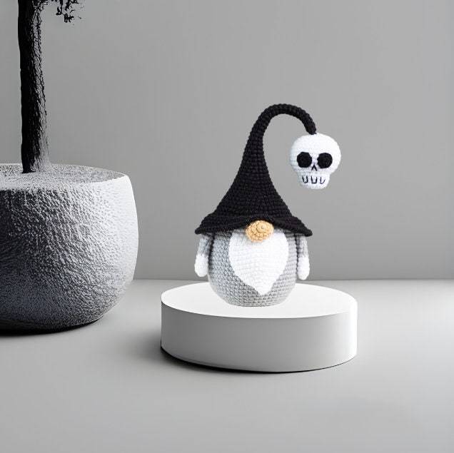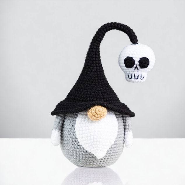 Halloween Black and Grey Skull Gnomes, Halloween Crocheted And Stuffed Doll, Halloween Home Deco, Halloween Handmade gift doll for kids