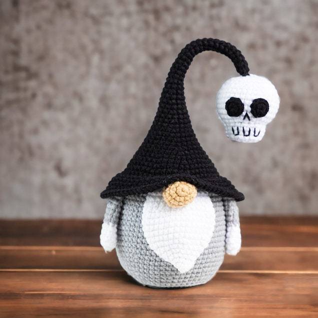Halloween Black and Grey Skull Gnomes, Halloween Crocheted And Stuffed Dolls