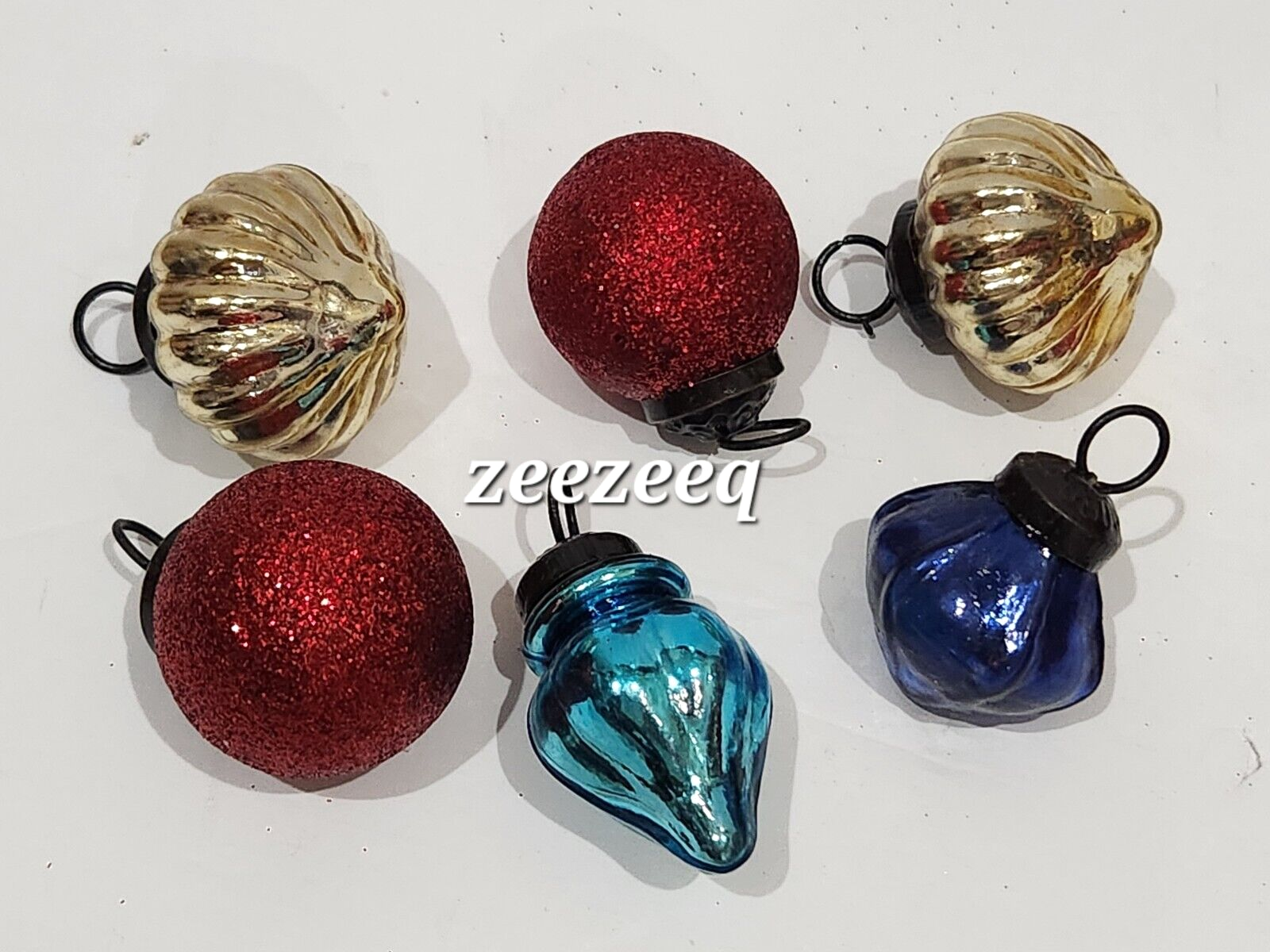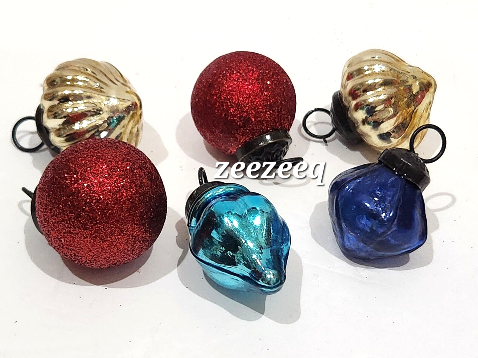 Kugel Vintage Style Red Gold Turquoise Mini Glass Christmas Ornaments #401