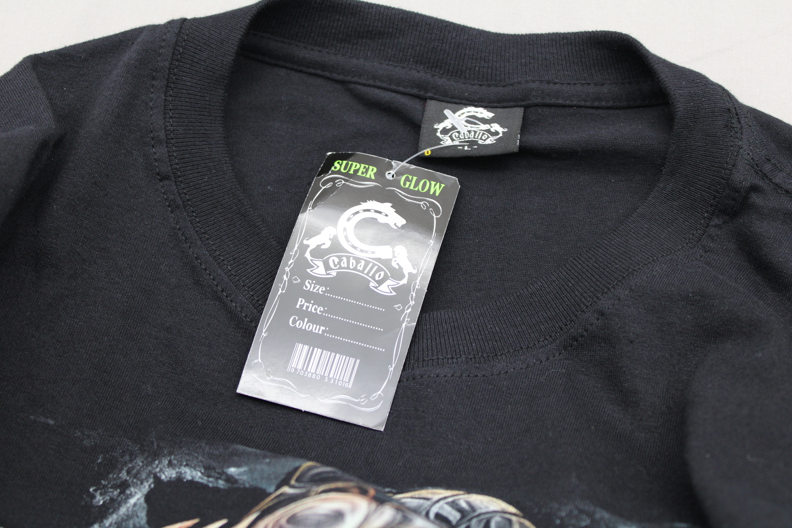 Up for sale is a vintage graphic t-shirt by Caballo. It has a black base colour with a huge scorpion graphic in a field of skulls screened on the front and back. It is a super glow shirt so the scropion glows in the dark. What an amazing vintage shirt do not miss out on it.