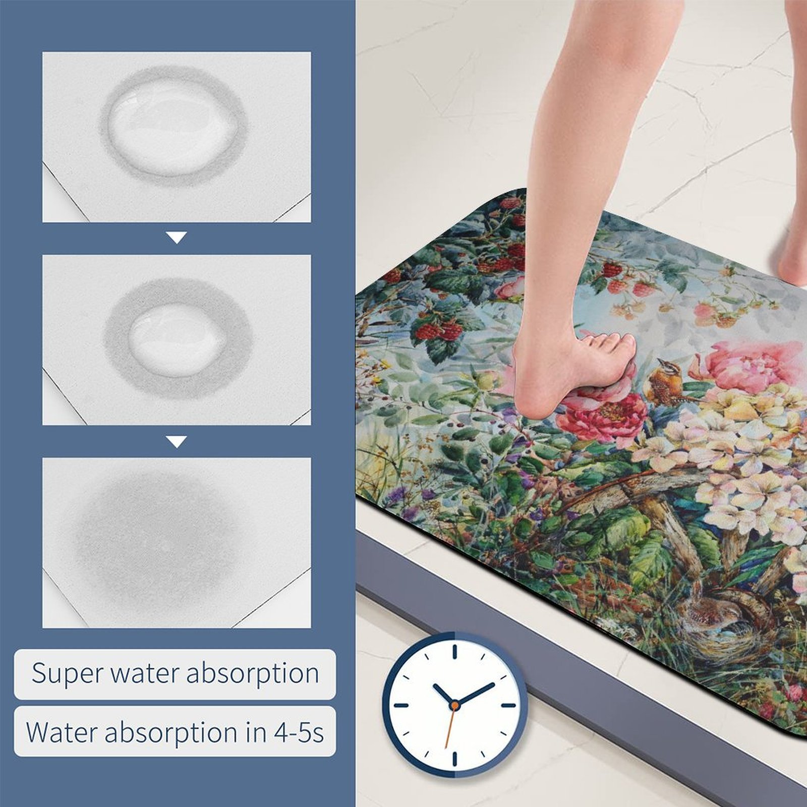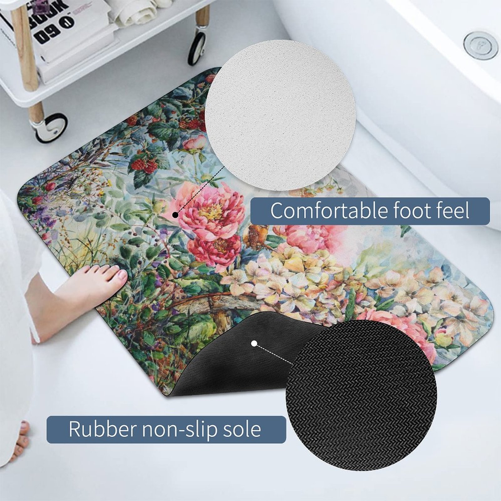 Mondxflaur Floral Non Slip Bathroom Mat for Shower Quick Dry Diatom Mud Rugs