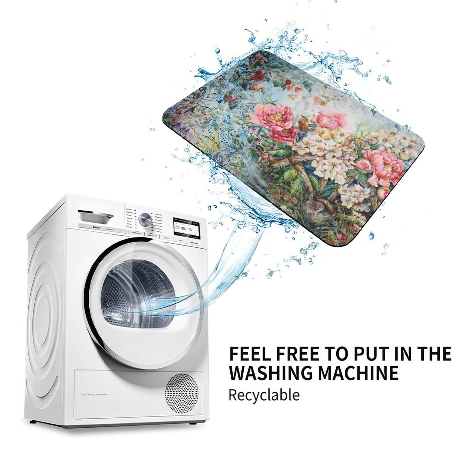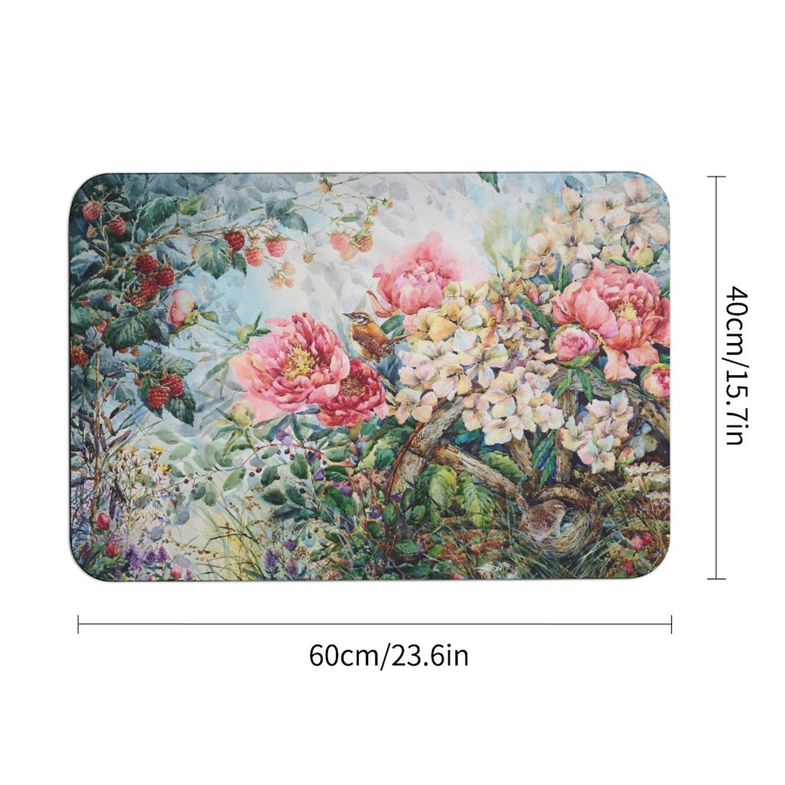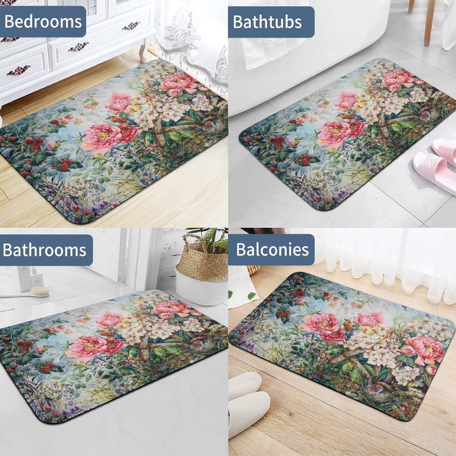 Vintage Flowers Retro Floral Bird Absorbent Kitchen Rug Bathroom Floor Mat For Bathtub Home House Cars Gym Office