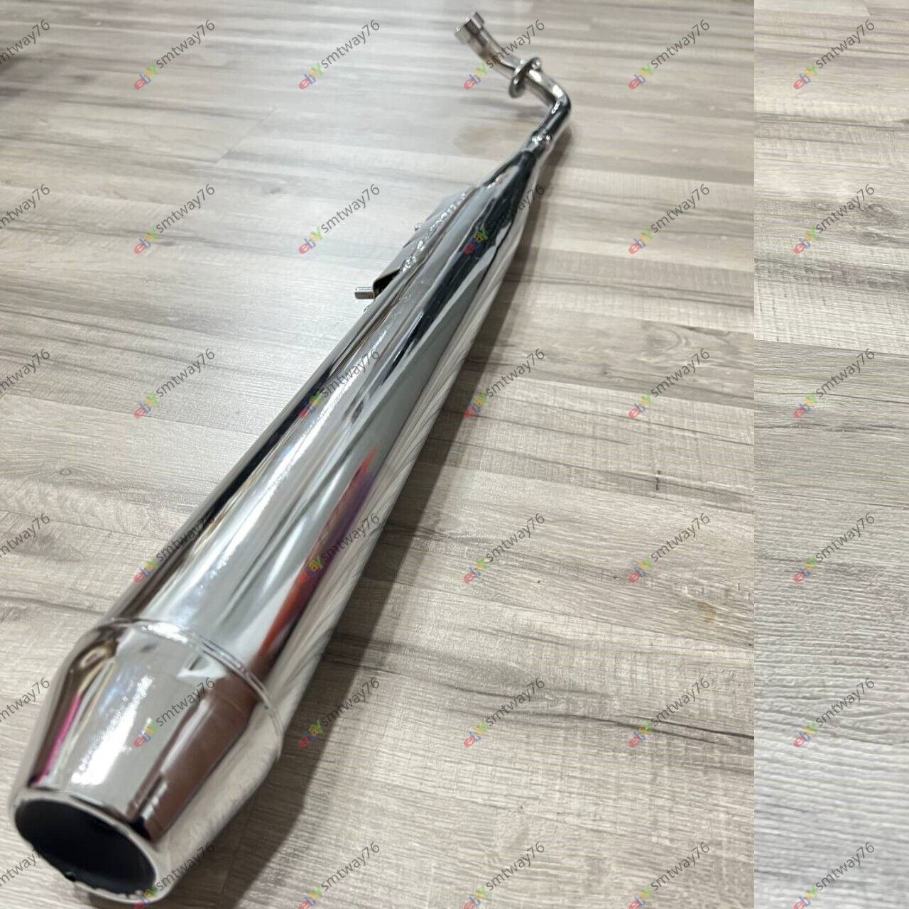 It includes a muffler, tip, and pipe made of stainless steel with a chrome finish. The easy-to-replace feature makes it a convenient choice for anyone who needs to replace their exhaust system. It is designed for placement on the right side of the vehicle.
