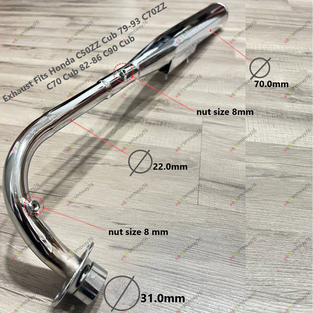 This exhaust system kit is perfect for Honda C50ZZ Cub from 1979 to 1993, C70ZZ C70 Cub from 1982 to 1986, and C90 Cub.