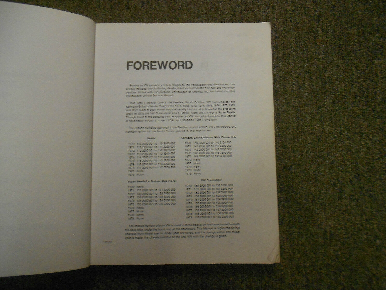 1970 1979 VW Super Beetle Beetle Karmann Ghia Official Service Manual NEW 79 x