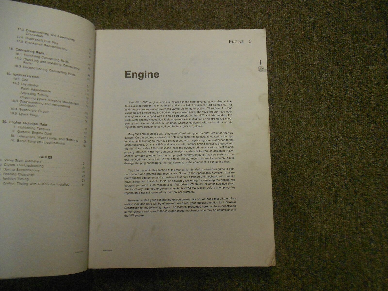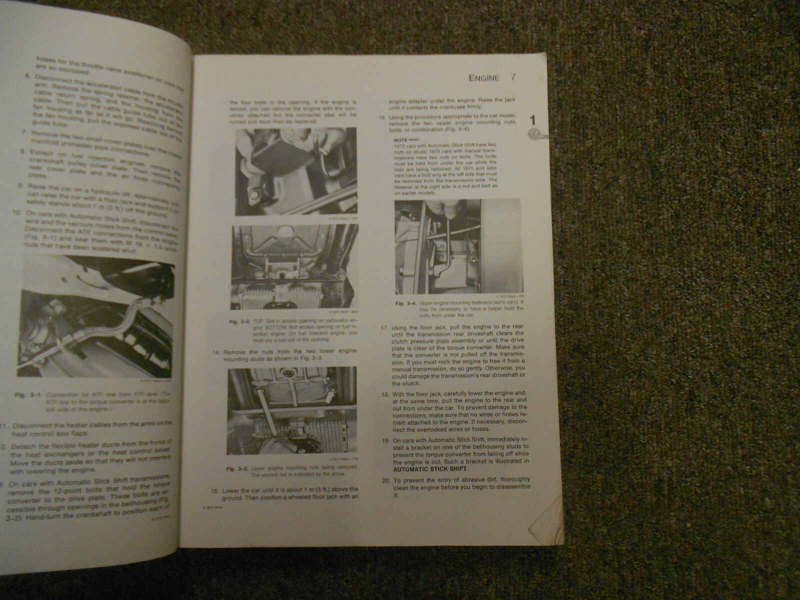 Loads of information and illustrations, step by step Instructions, exploded illustrations and/or diagrams, great manual to have when you own a VOLKSWAGEN Super Beetle/Beetle/Karmann Ghia. This manual will save you money in Repairs/Service.