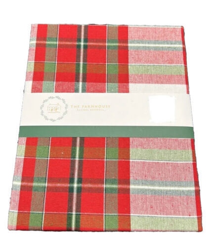 Farmhouse Rachel Ashwell Christmas Red Green Tablecloth Plaid 60” Round