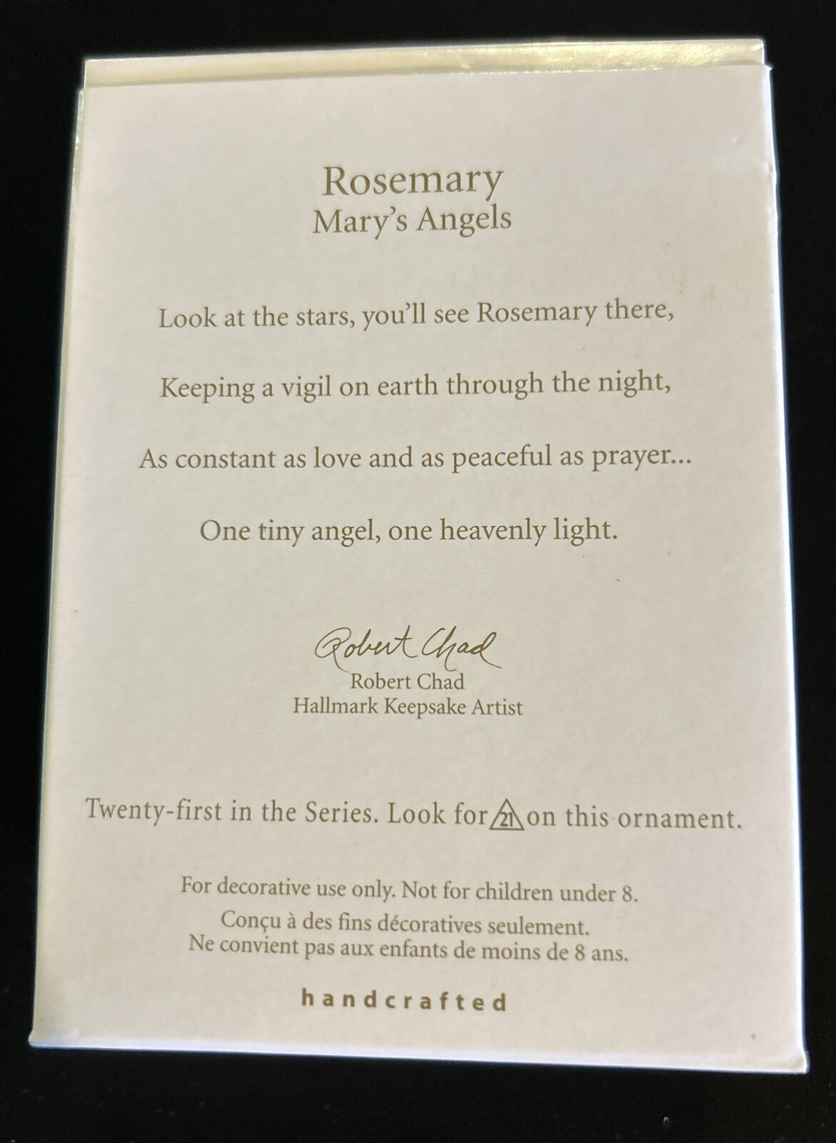 2008 Hallmark Mary's Angels Series 21 Rosemary Christmas Ornament QX7074 in Box