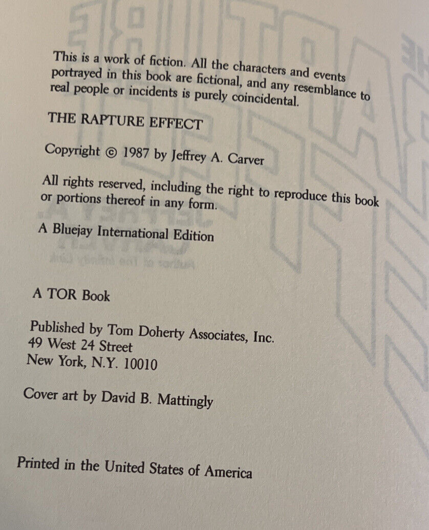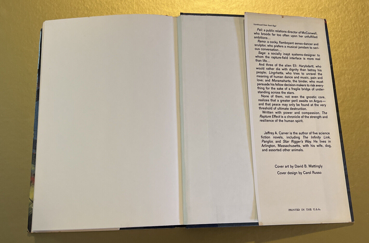 The Rapture Effect by Jeffrey A. Carver Vintage 1987 Hardcover Book Club Edition