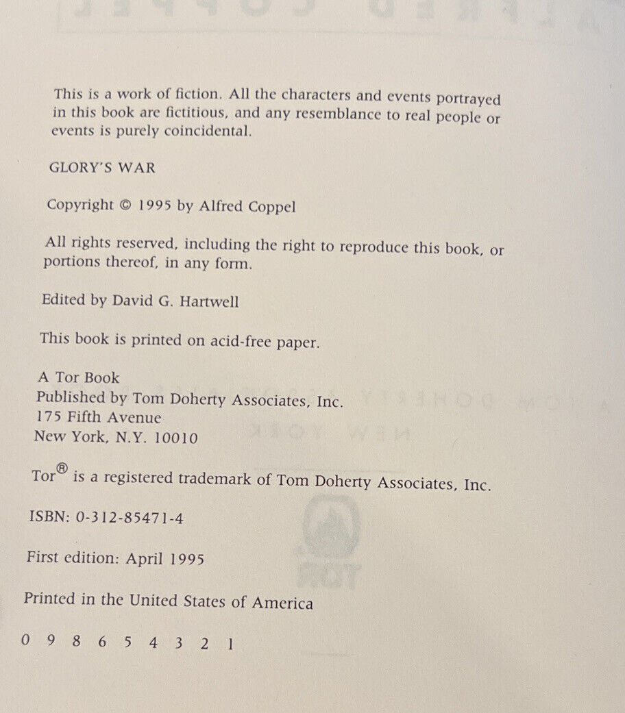 GLORY'S WAR 1995 Book 2 of the Golden Wing Cycle First Edition By Alfred Coppel
