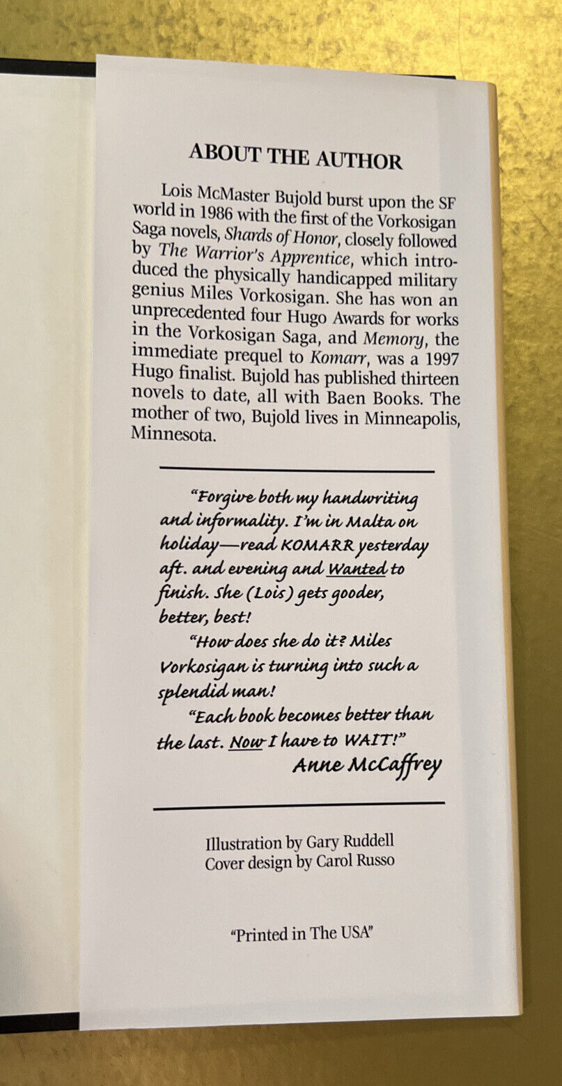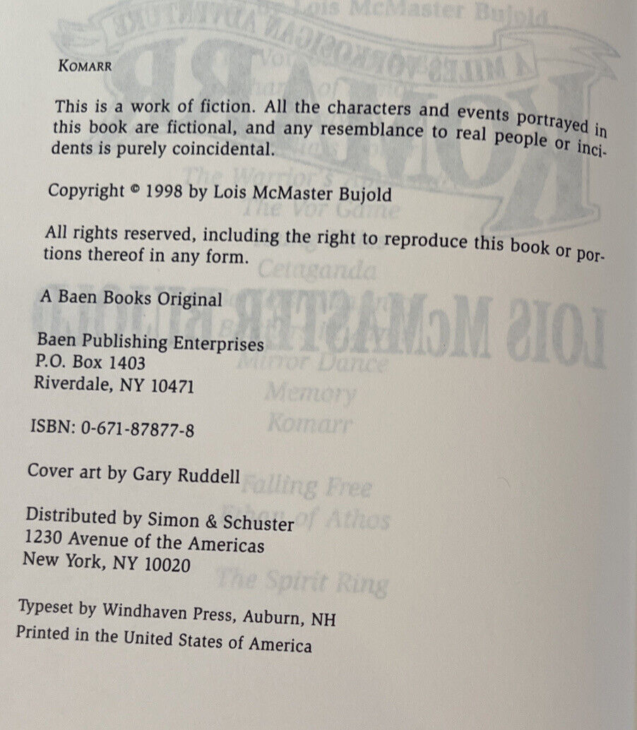 Komarr by Lois McMaster Bujold - Hardcover Book With Dust Jacket.