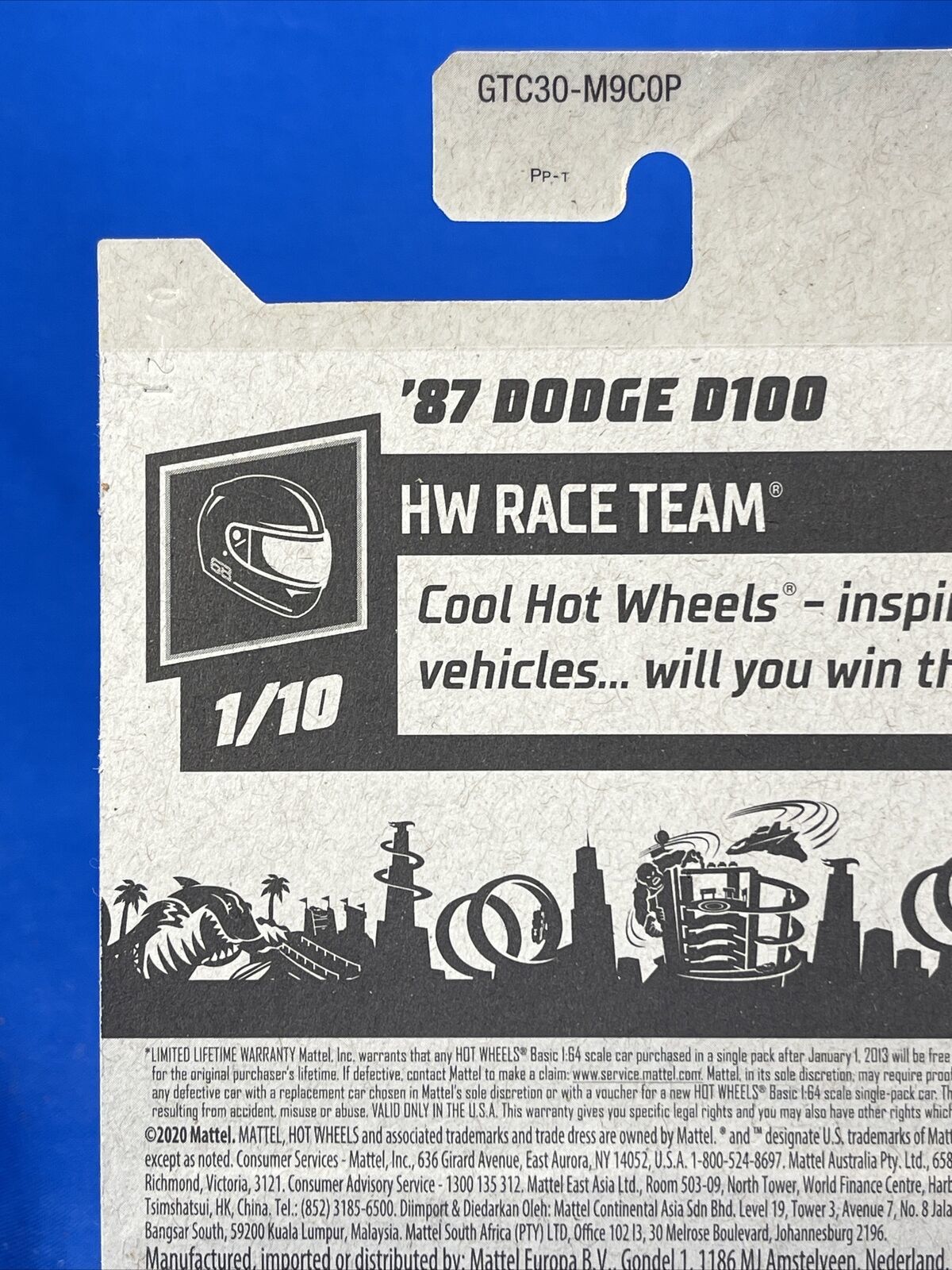 2021 Hot Wheels HW RACE TEAM 1/10 '87 Dodge D100 #168 168/250