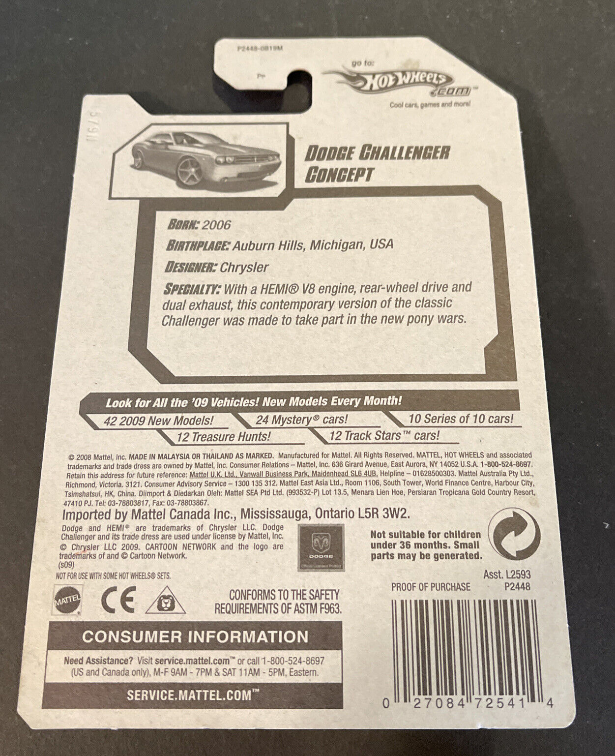 Hot Wheels 2009 Dodge CHALLENGER Concept Collector Car 02/10 Battle Force Package NOS.