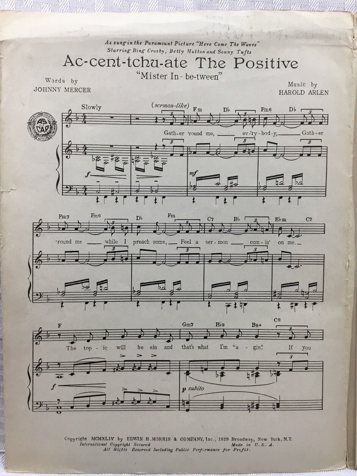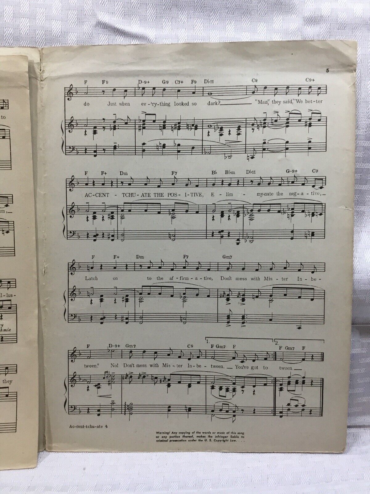 Ac-Cent-Tchu-Ate The Positive 1944 Sheet Music Bing Crosby Mister In-Between
