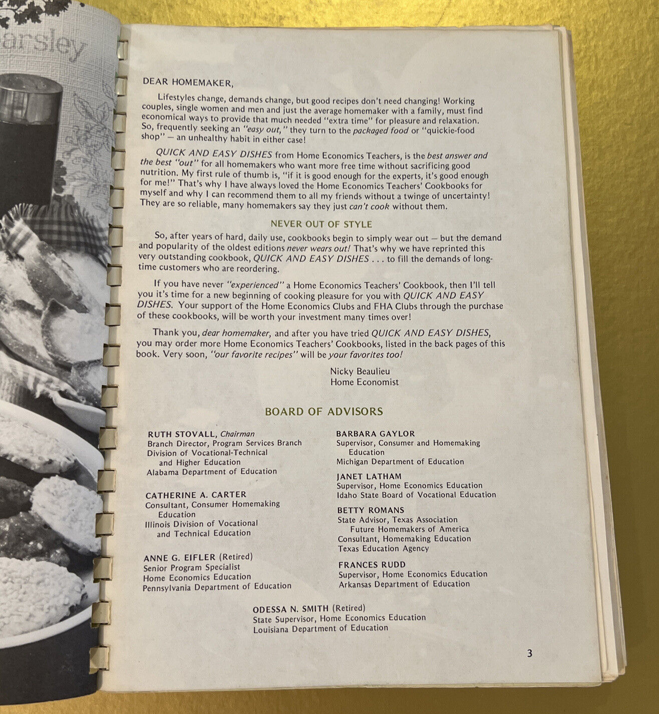 Quick Easy Dishes, Revised- Favorite Recipes of Home Economics Teachers.