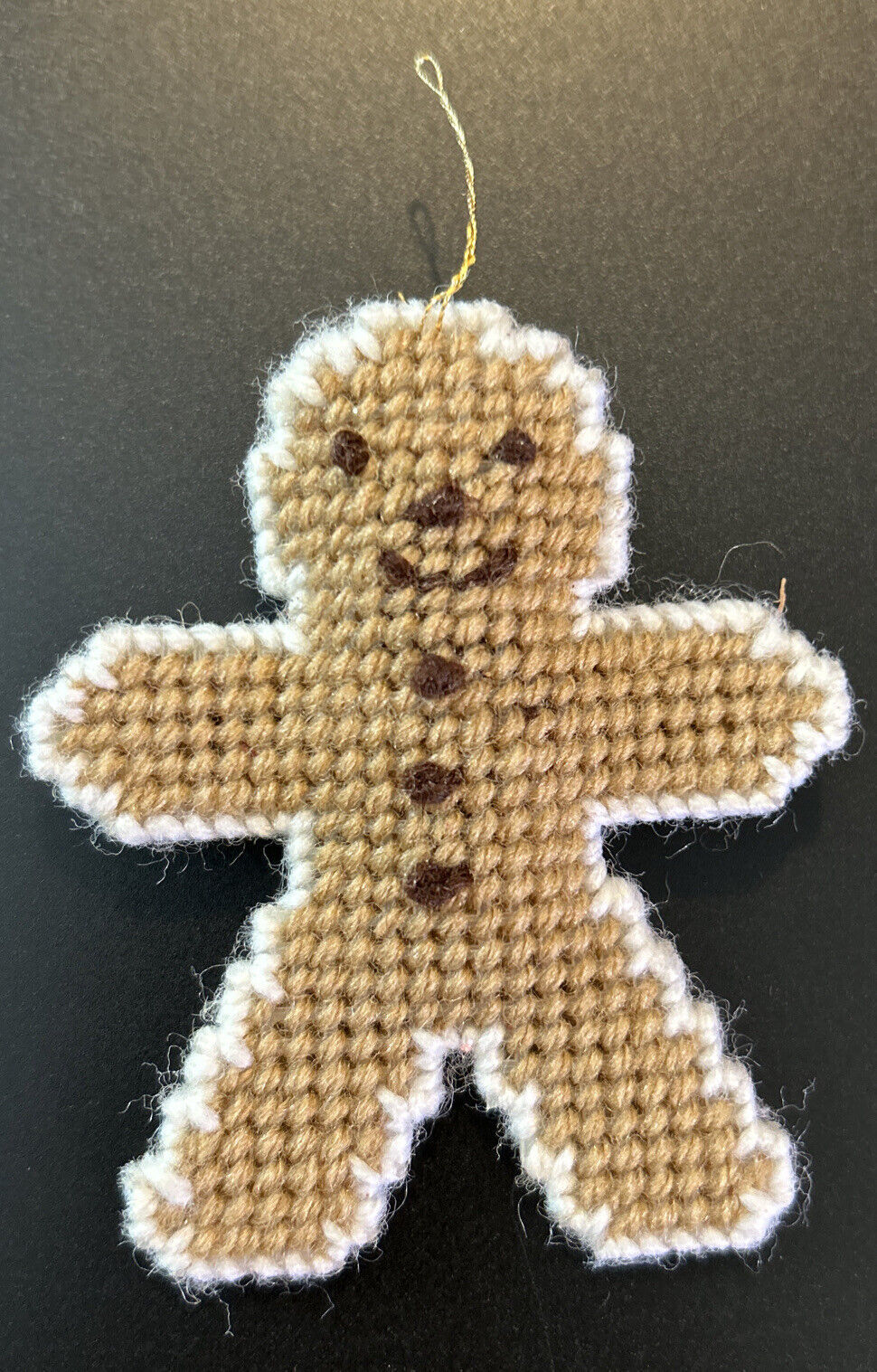Add this charming vintage Christmas ornament to your holiday decor collection. This handmade wool ornament features a cute gingerbread man design, and is perfect for any collector or lover of all things antique. The striking brown color and intricate details make it a great addition to any Christmas tree.