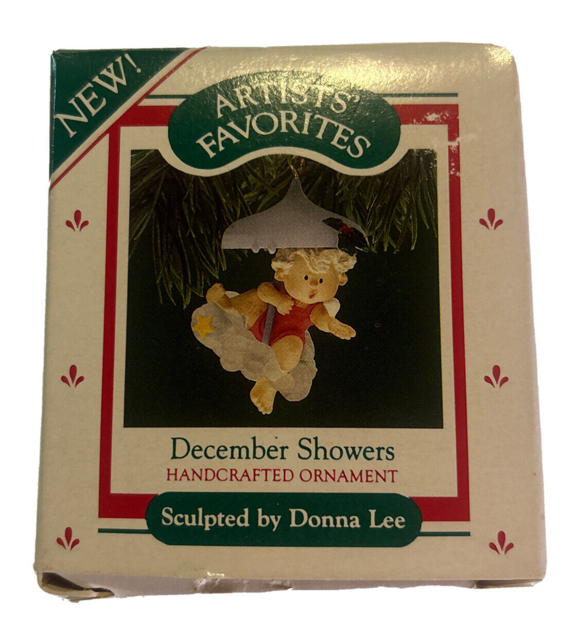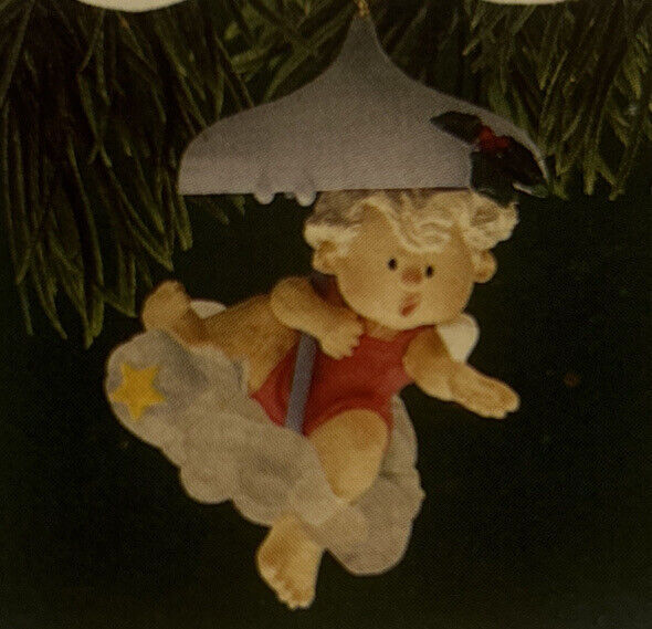 1987 Hallmark Keepsake Ornament DECEMBER SHOWERS Donna Lee Angel Umbrella NOS