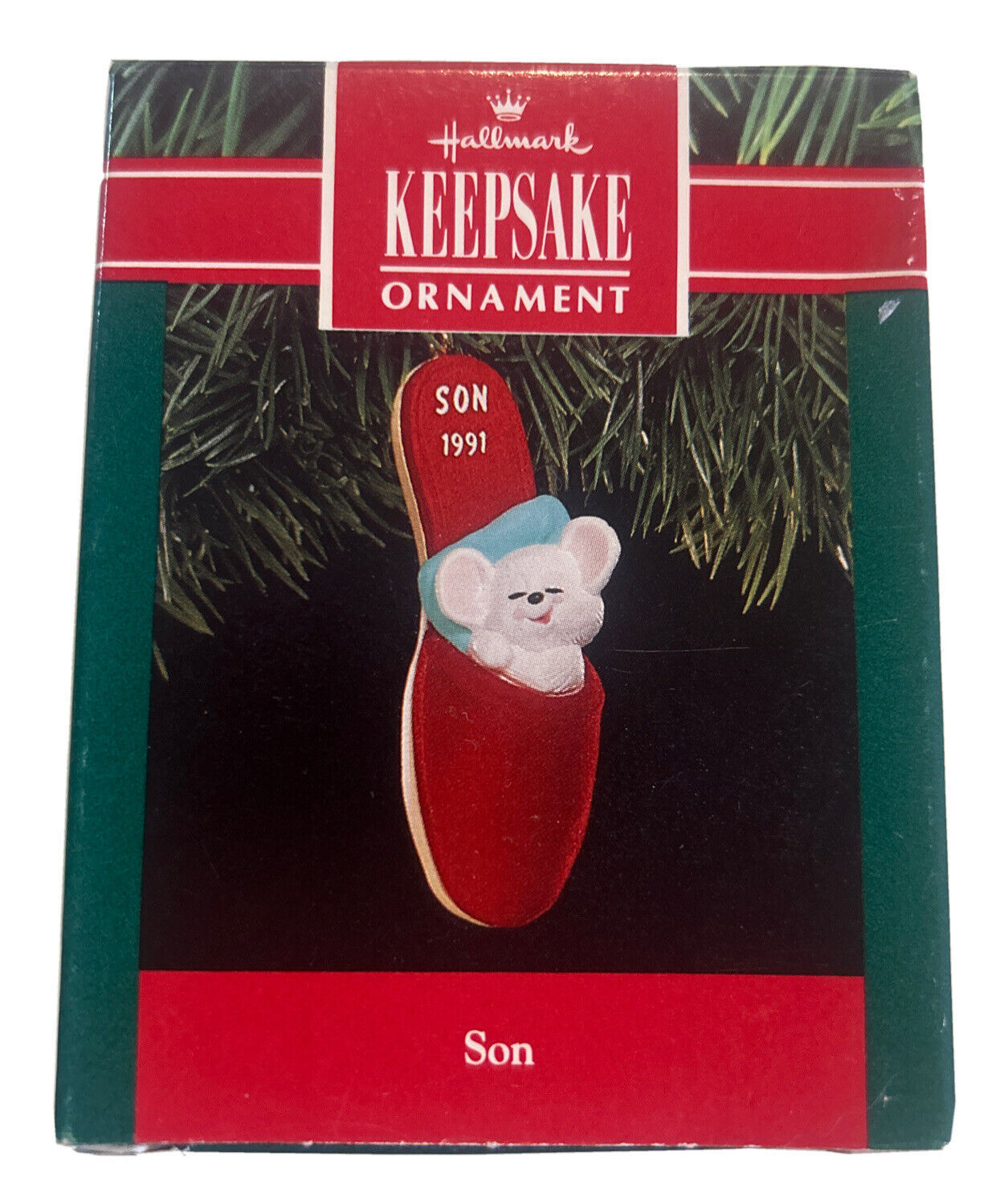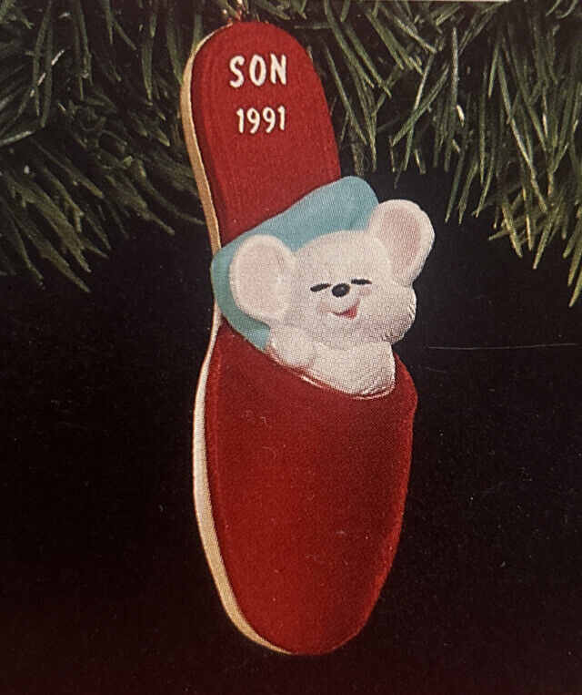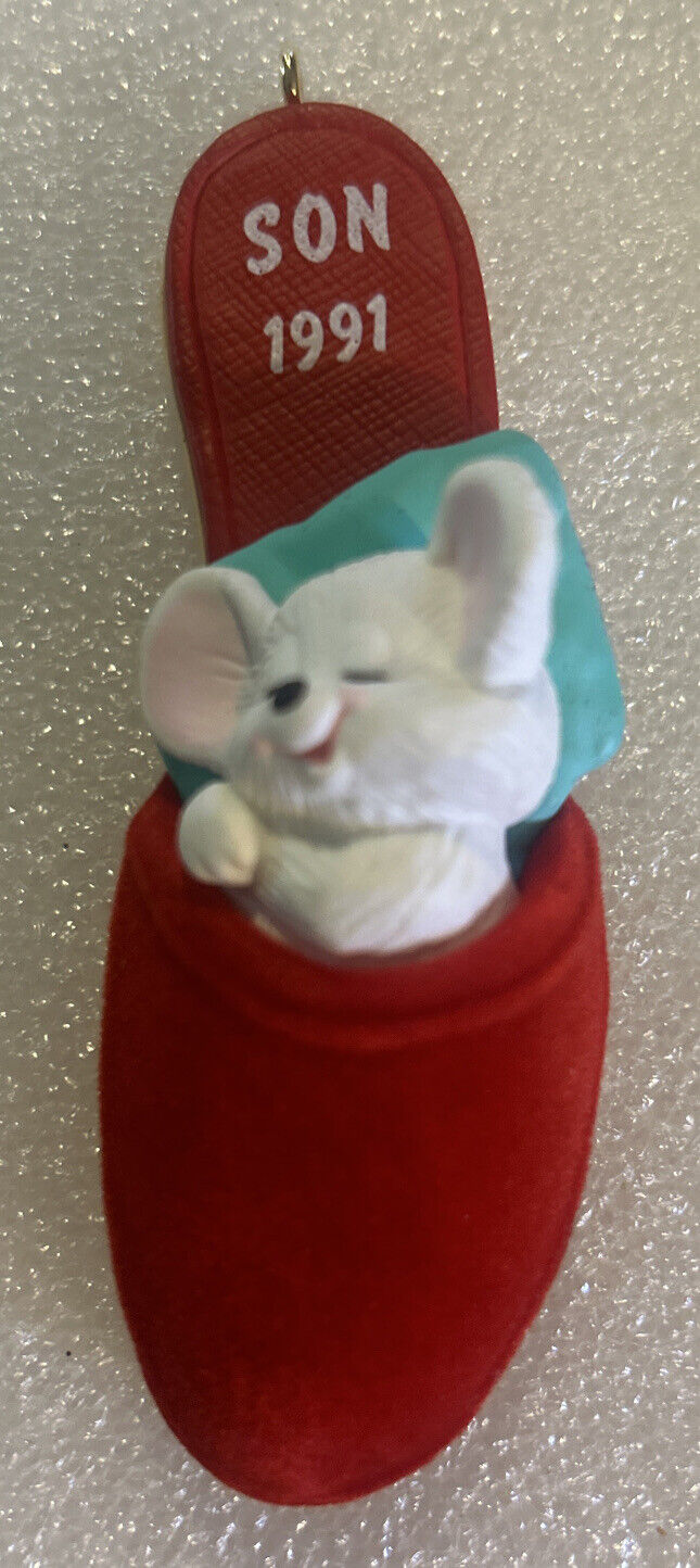 Hallmark Keepsake Christmas Ornament - Son- Dated - 1991 - Mouse In Slipper.