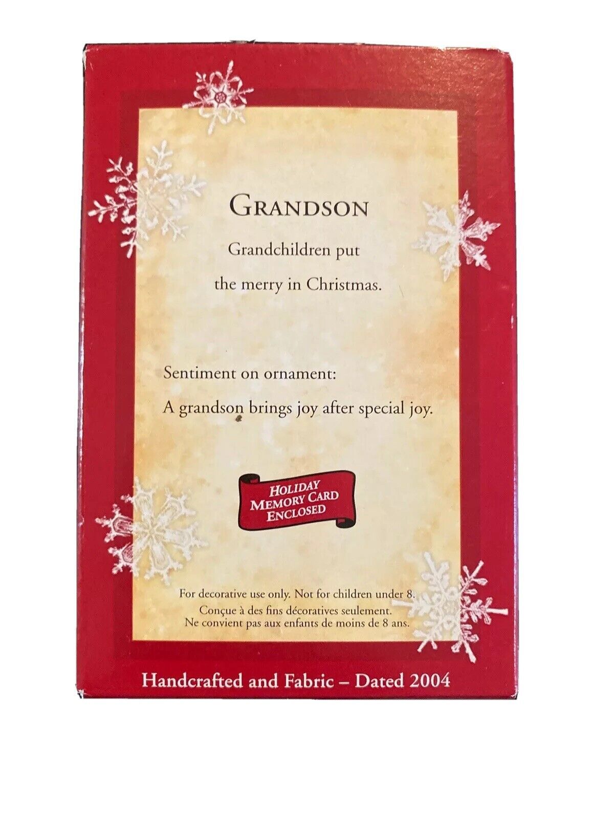 2004 Hallmark GRANDSON Keepsake Ornament Handcrafted Scarf Hat Shelf NEW