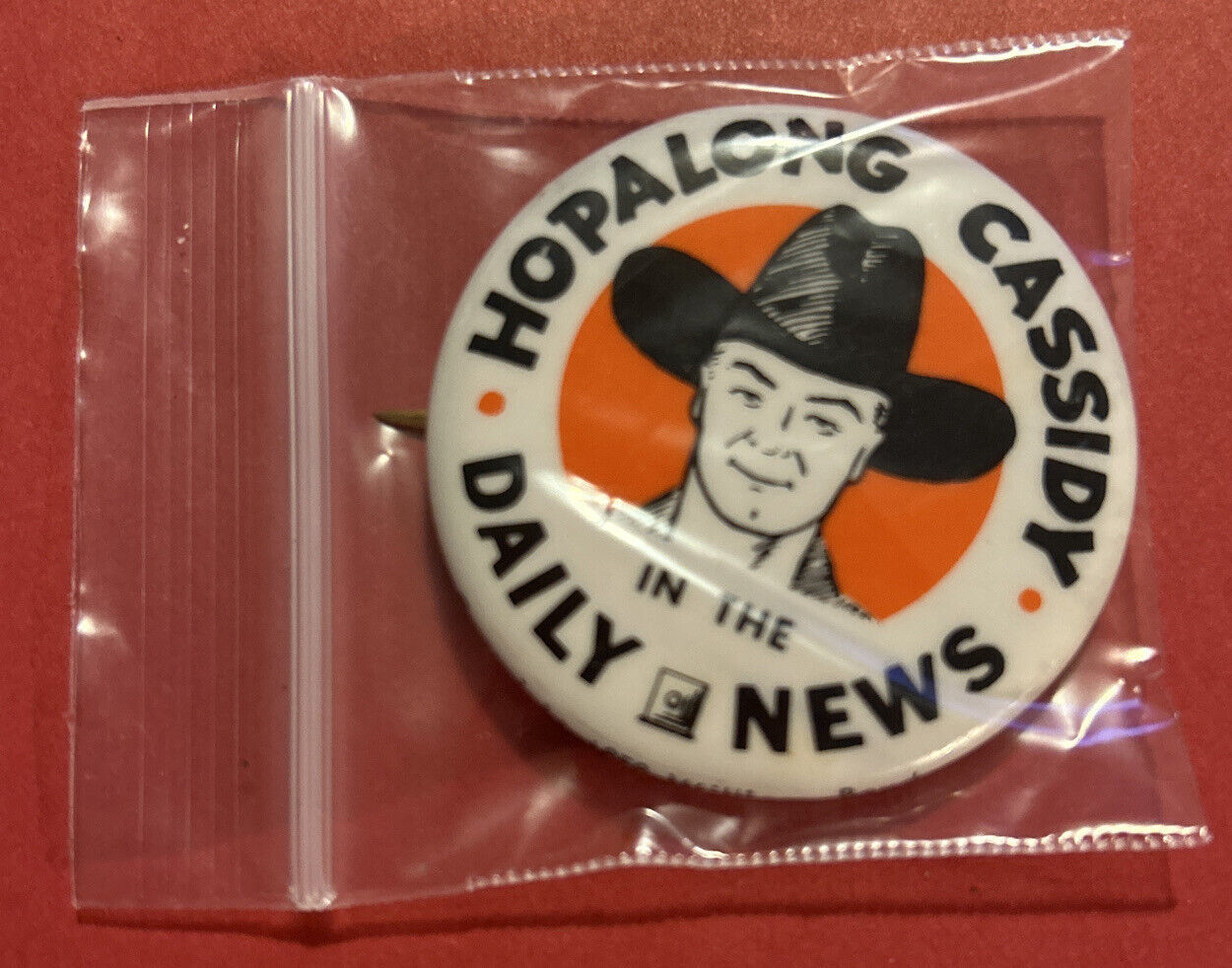 "HOPALONG CASSIDY" in the DAILY NEWS 2" VINTAGE CELLULOID PINBACK BUTTON