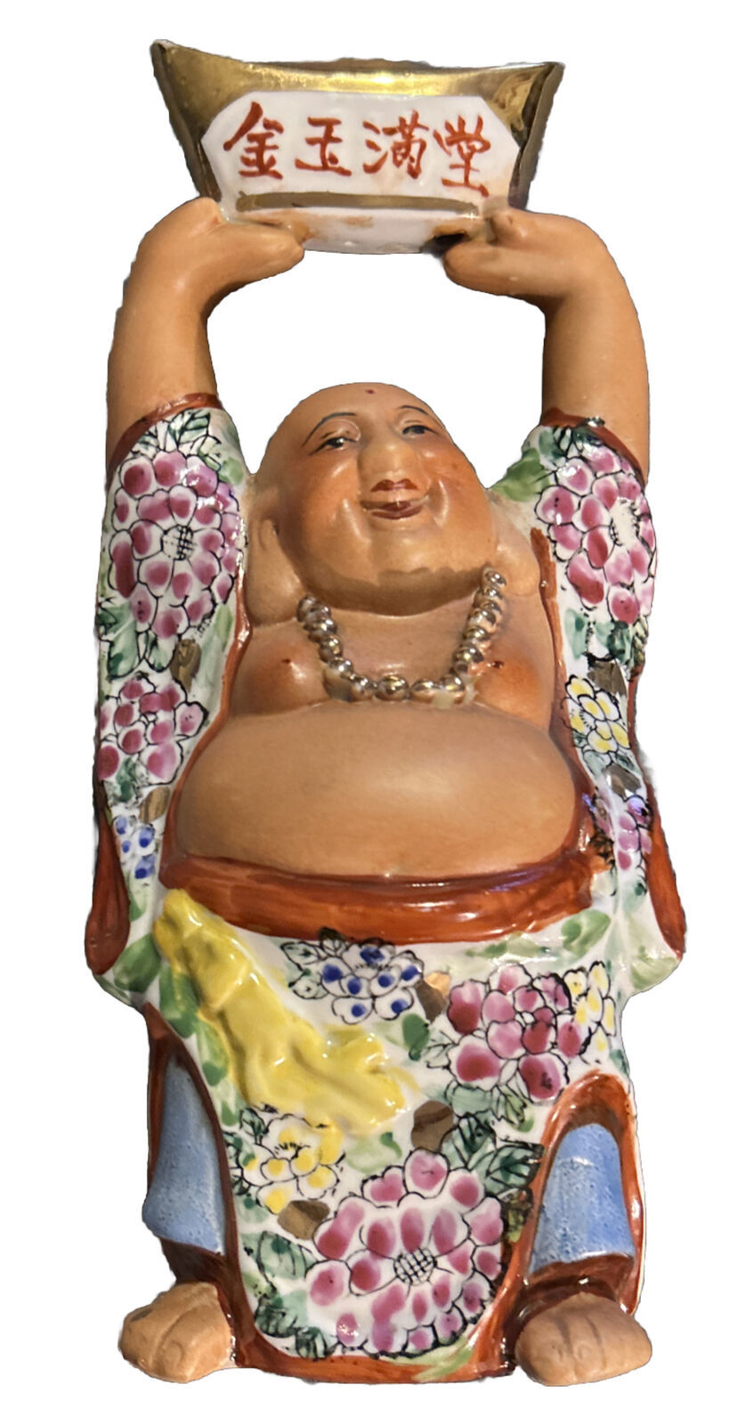 Vintage Bisque Porcelain Chinese Laughing Buddha “Full Of Gold & Jade”- 13" Tall