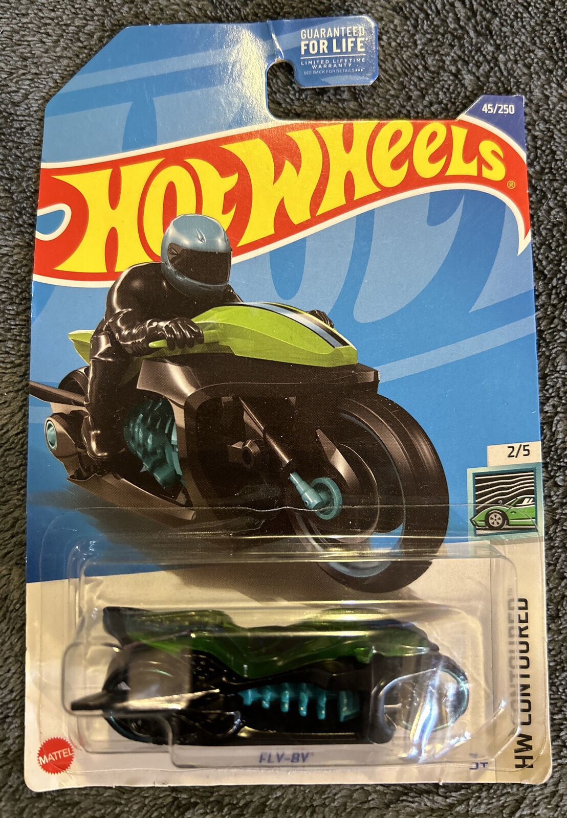 Introducing the Hot Wheels Fly-By HW Contoured Bike, part of the HW Contoured series and a must-have addition to any car collection. This model, with a scale of 1:64, is made of high-quality steel and plastic materials, ensuring durability and longevity. Its vibrant design is sure to catch the eye of any diecast toy vehicle enthusiast, and its inclusion in the Hot Wheels collection makes it a highly sought-after item.