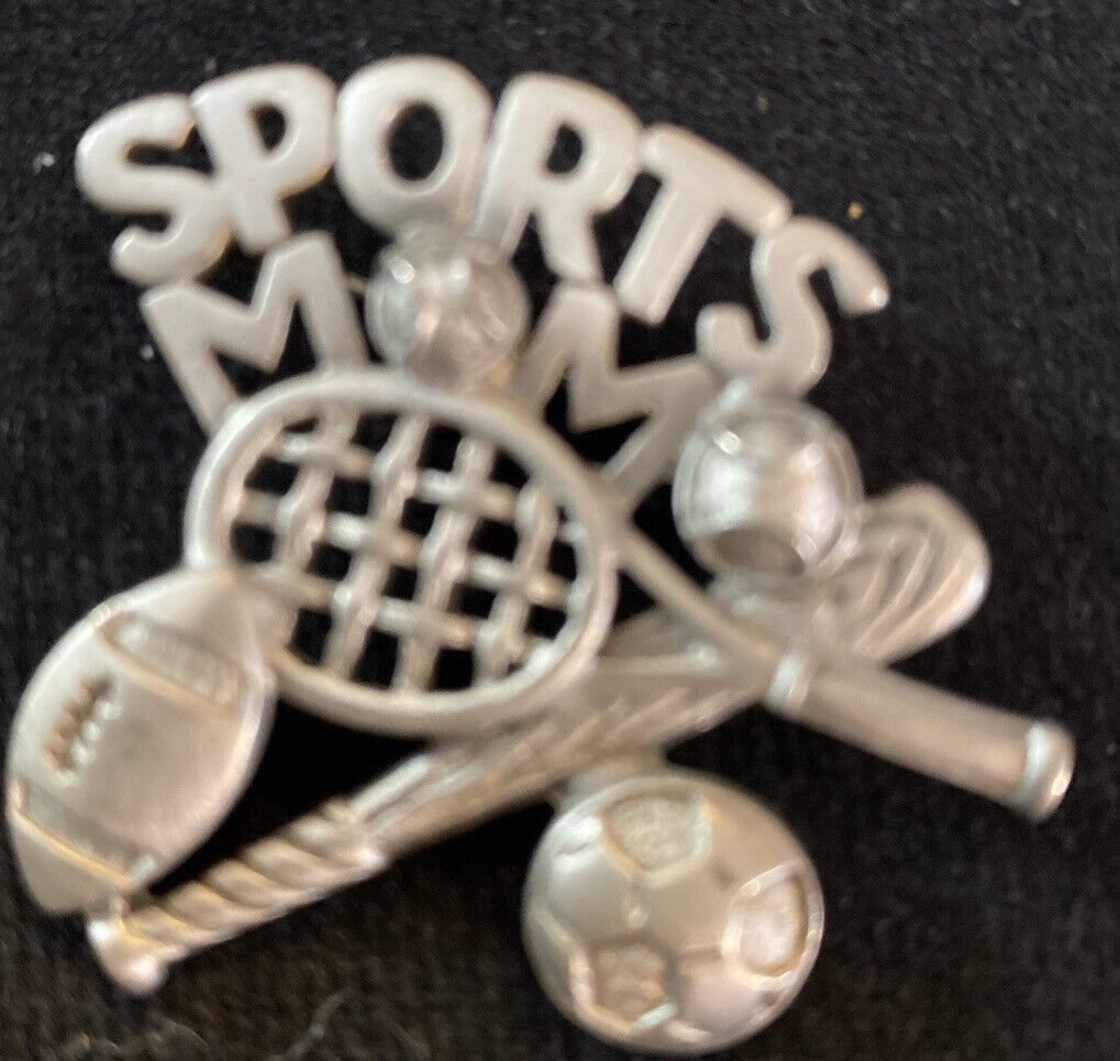 Brooch Pin - REN - Sports Mom - Tennis Soccer Baseball - Silver Tone. Condition is Pre-owned. Shipped with USPS Priority Mail.