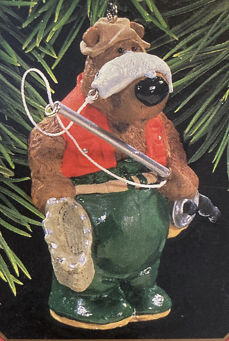 1997 "Catch of the Day" Hallmark Keepsake Bear Catching Fish Christmas Ornament