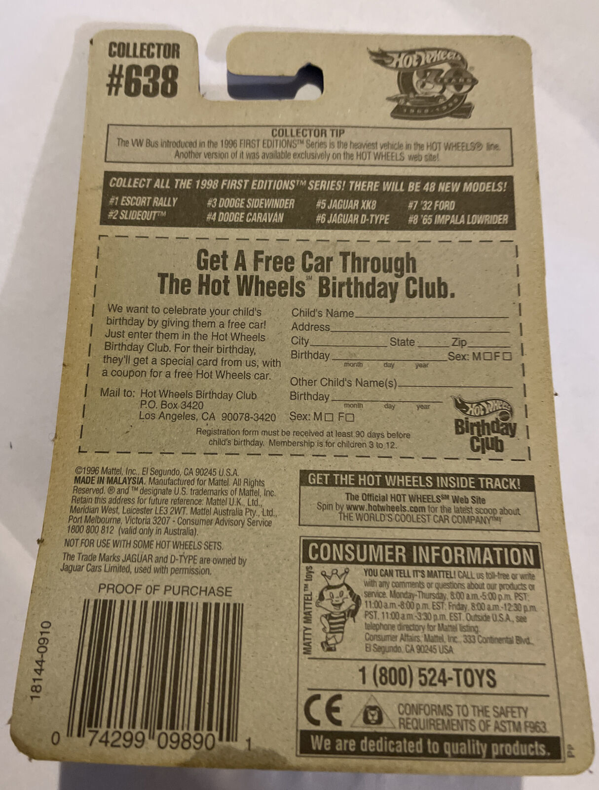 1998 Vintage Hot Wheels #638 First Editions and 50 similar items
