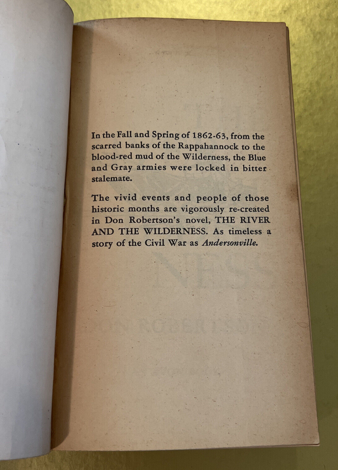 The River and the Wilderness by Don Robertson - Vintage Paperback - Civil War.