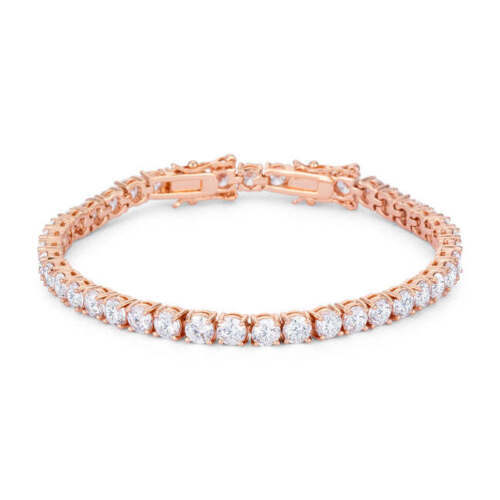 Silvertone Rhodium or Gold Plated Brass 17.6ct Round CZ 8" Tennis Bracelet
