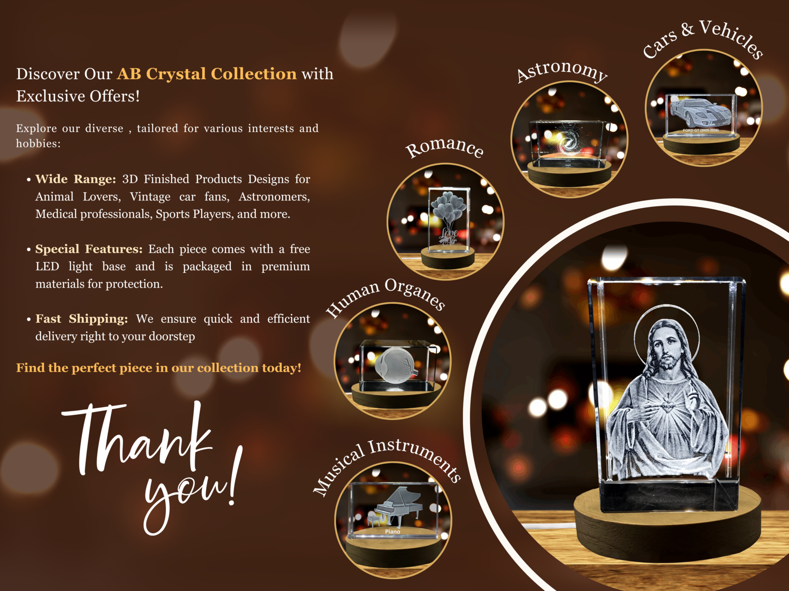 First, our designers create a unique and detailed 3D model. Then, our skilled technicians etch the 3D model into crystal using advanced laser technology.